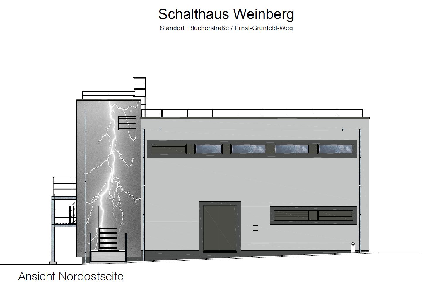 Ansicht des neuen Schalthauses am Weinberg.