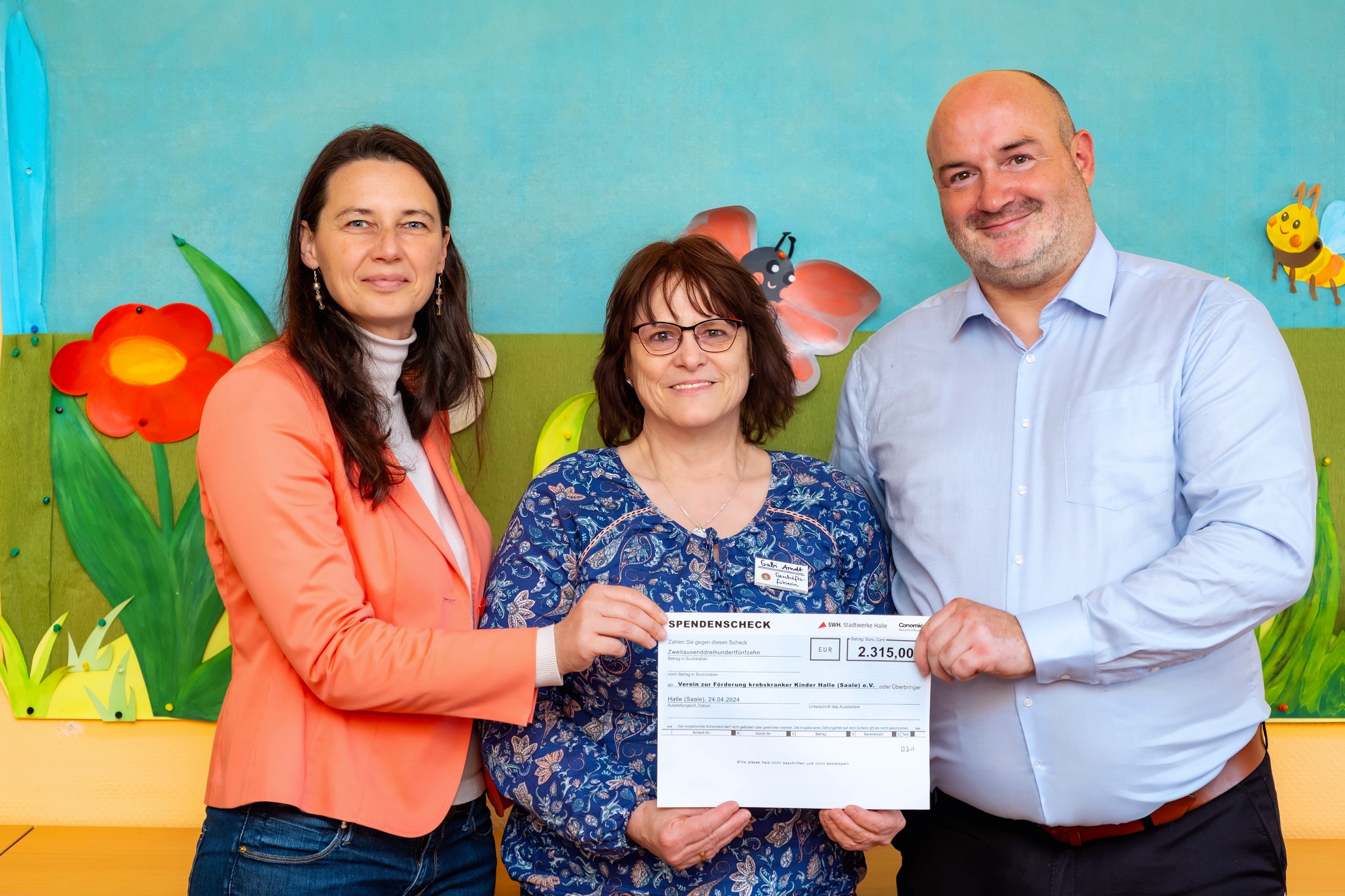 Tue Gutes und sprich darüber. Dank dem großen Interesse, der regen Teilnahme und der Spendenbereitschaft der Hallenser und Hallenserinnen zur ersten Panel-Befragung HALLE GEFRAGT konnte dem Verein zur Förderung krebskranker Kinder Halle (Saale) e.V. eine Spende in Höhe von 2.315 Euro überreicht werden. Zusammen hatten die Stadtwerke Halle und der Marktforschungsbereich der Conomic GmbH im Oktober 2023 mit diesem Panel ein vielversprechendes Instrument zur Bürgerbeteiligung ins Leben gerufen.
