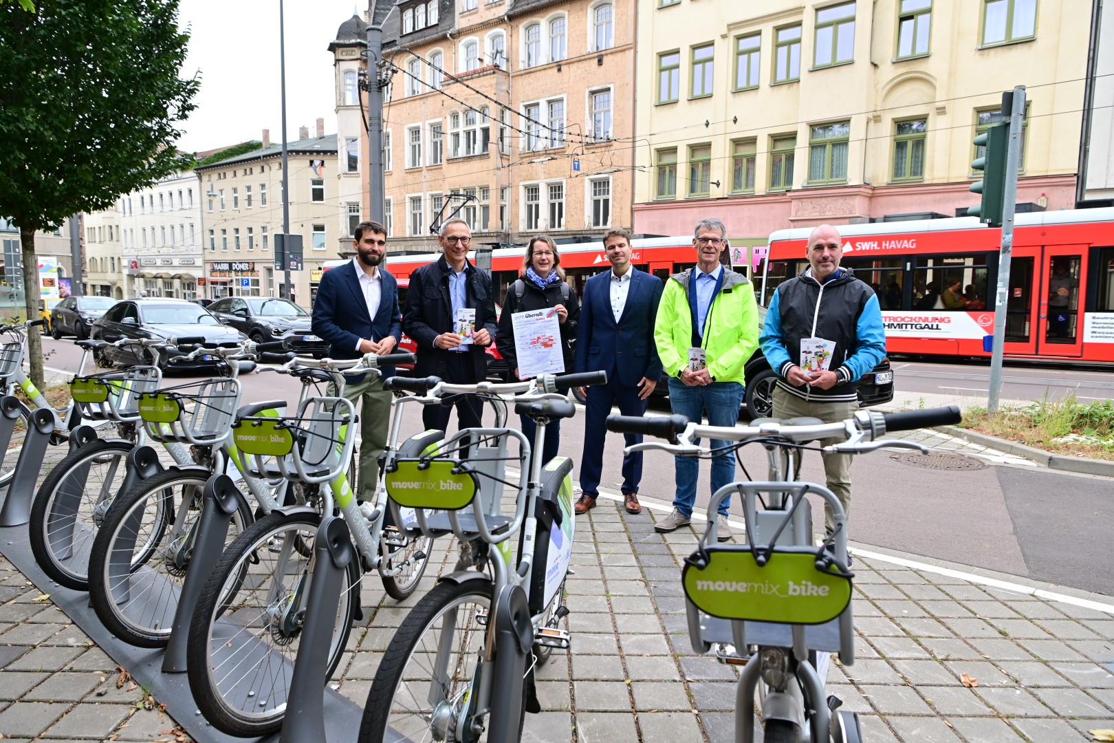 Um Hallenserinnen und Hallenser langfristig für den ÖPNV zu begeistern, schließt die HAVAG, Verkehrstochter der Stadtwerke Halle, im Rahmen des ÖPNV-Modellprojekts STADTLand+ nun den Bau von neun öffentlichen Mobilitätsstationen in unmittelbarer Nähe der Haltestellen S-Bahnhof Neustadt, Am Steintor, Südstadt, Trotha, Büschdorf, Hauptbahnhof, Heide-Universitätsklinikum und Reileck ab. Diese movemix_stationen bündeln die umweltfreundlichen Verkehrsmittel Carsharing (movemix_car), Bikesharing (movemix_bike) und auch E-Scootersharing (movemix_roller). Bis zum Jahresende 2024 folgt eine weitere Station an den Haltestelle Moritzburgring.