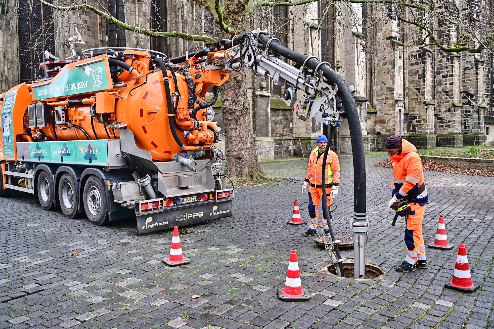 Die Stadtwerketochter Hallesche Wasser und Stadtwirtschaft GmbH (HWS) setzt auf moderne Technik, um das Abwassersystem in Halle langfristig instand zu halten und effizient zu betreiben. Im Fokus steht dabei nicht nur die regelmäßige Inspektion der Kanäle, sondern auch deren nachhaltige Reinigung und Pflege. Zu diesem Zweck kommt nun ein neues Hochdruck-Spülfahrzeug zum Einsatz. Es reinigt auch größere Kanäle effektiv und bereitet das Abwasser direkt aus den Kanälen auf, um es für den Reinigungsprozess erneut zu verwenden. Das spart Trinkwasser und trägt gleichzeitig zur Leistungsfähigkeit sowie zum Substanzerhalt des 830 Kilometer langen Abwassernetzes in Halle bei. Auf diese Weise gewährleistet die HWS jederzeit eine hohe Entsorgungssicherheit für unsere Stadt.