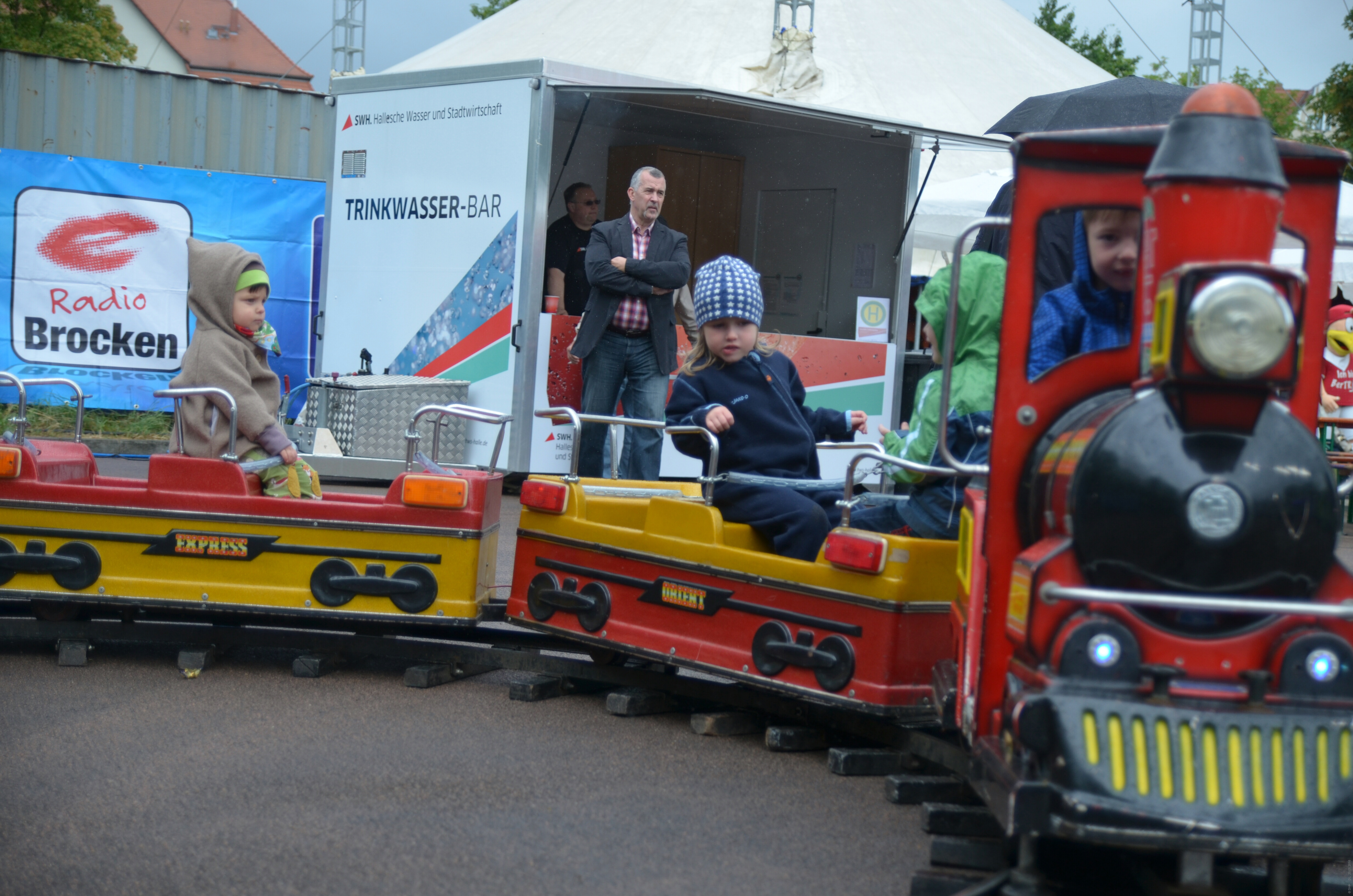 Viel genutzt: die Eisenbahn für Kinder auf dem Rossplatz - im Hintergrund die Trinkwasserbar der HWS.
