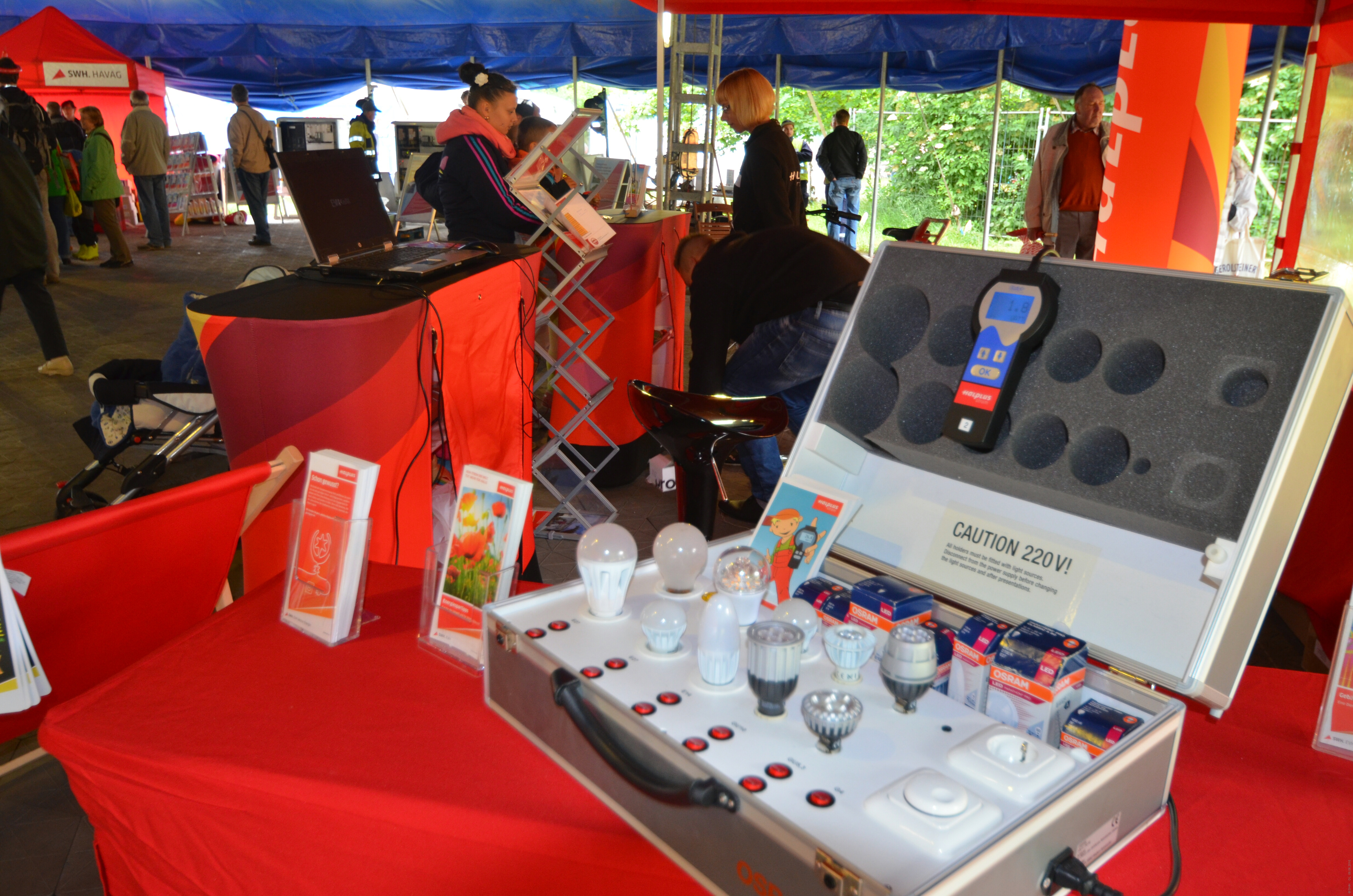 Die EVH bot vieles, so auch Energiesparberatung u.a. mit ihrem Lampenkoffer an.