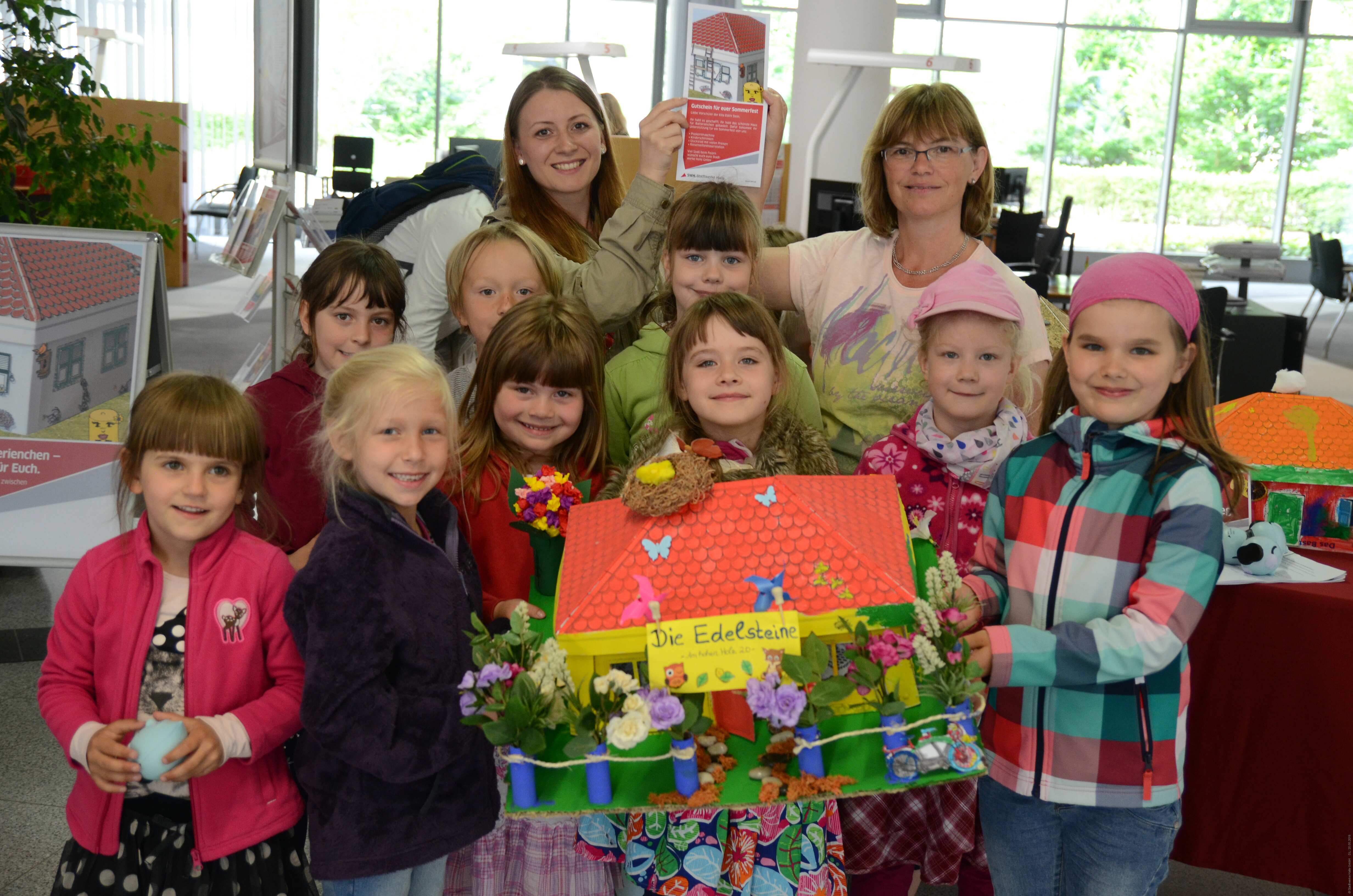 70 Kinder warteten gespannt auf die Verkündung, zehn konnten anschließend jubeln: Sie hatten den Bastelwettbewerb der Stadtwerke Halle mit dem Motto „Ein Haus für Batterienchen – ein Sommerfest für euch“ gewonnen. Mit ihrem selbst gebastelten und mit einem funktionierenden Stromkreis versehenen Haus für die Batterie ‚Batterienchen‘ überzeugten die Kinder von der Kindertagesstätte Edith Stein die Jury. Sie freuen sich nun auf ein von den Stadtwerken Halle gesponsertes Sommerfest. Der Bastelwettbewerb fand im Rahmen der Schulkontaktpflege der Stadtwerke Halle statt. Alle eingereichten Bastelhäuser werden noch bis zum 24. Juni 2015 im Kundencenter an der Spitze ausgestellt.