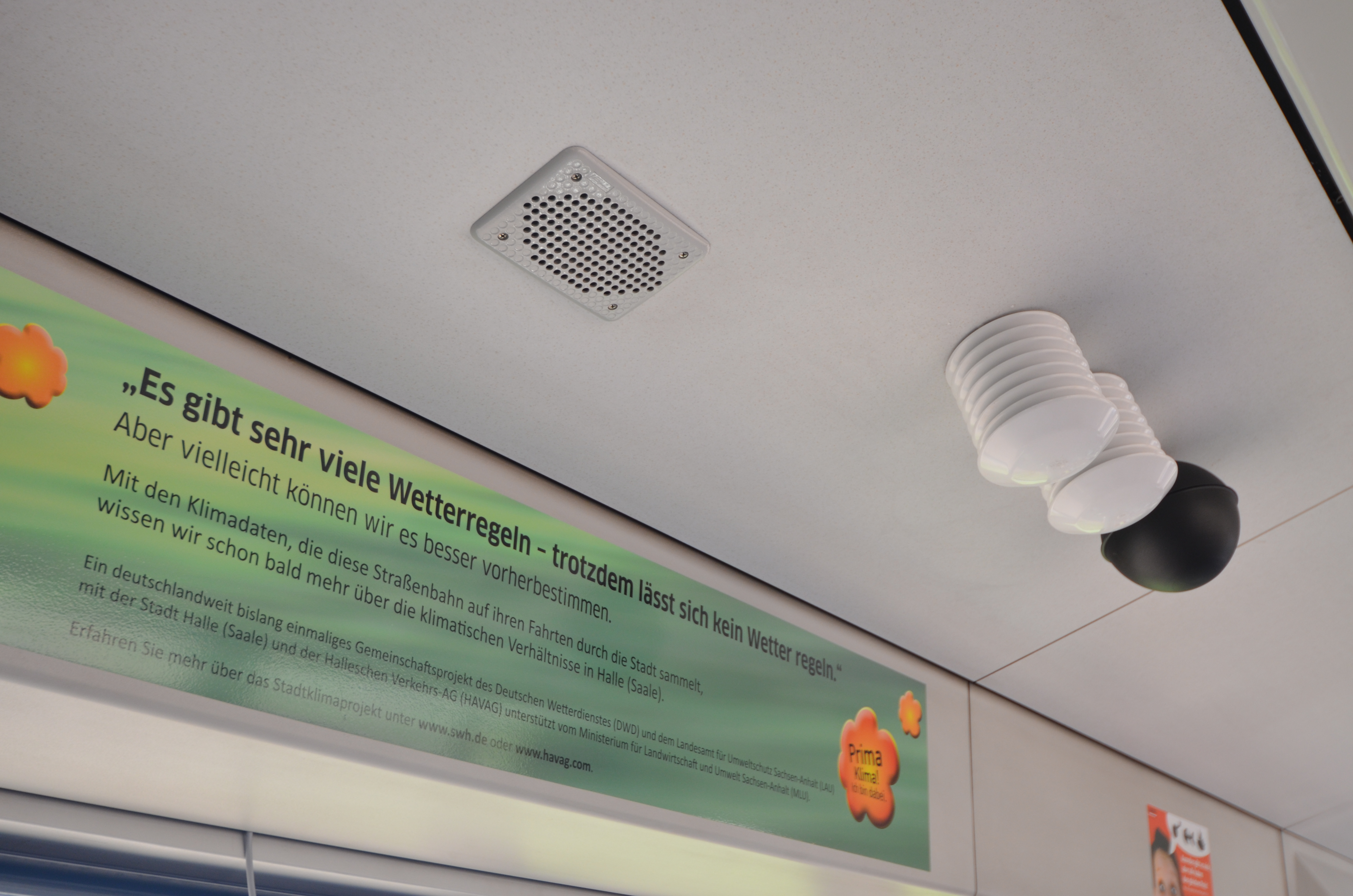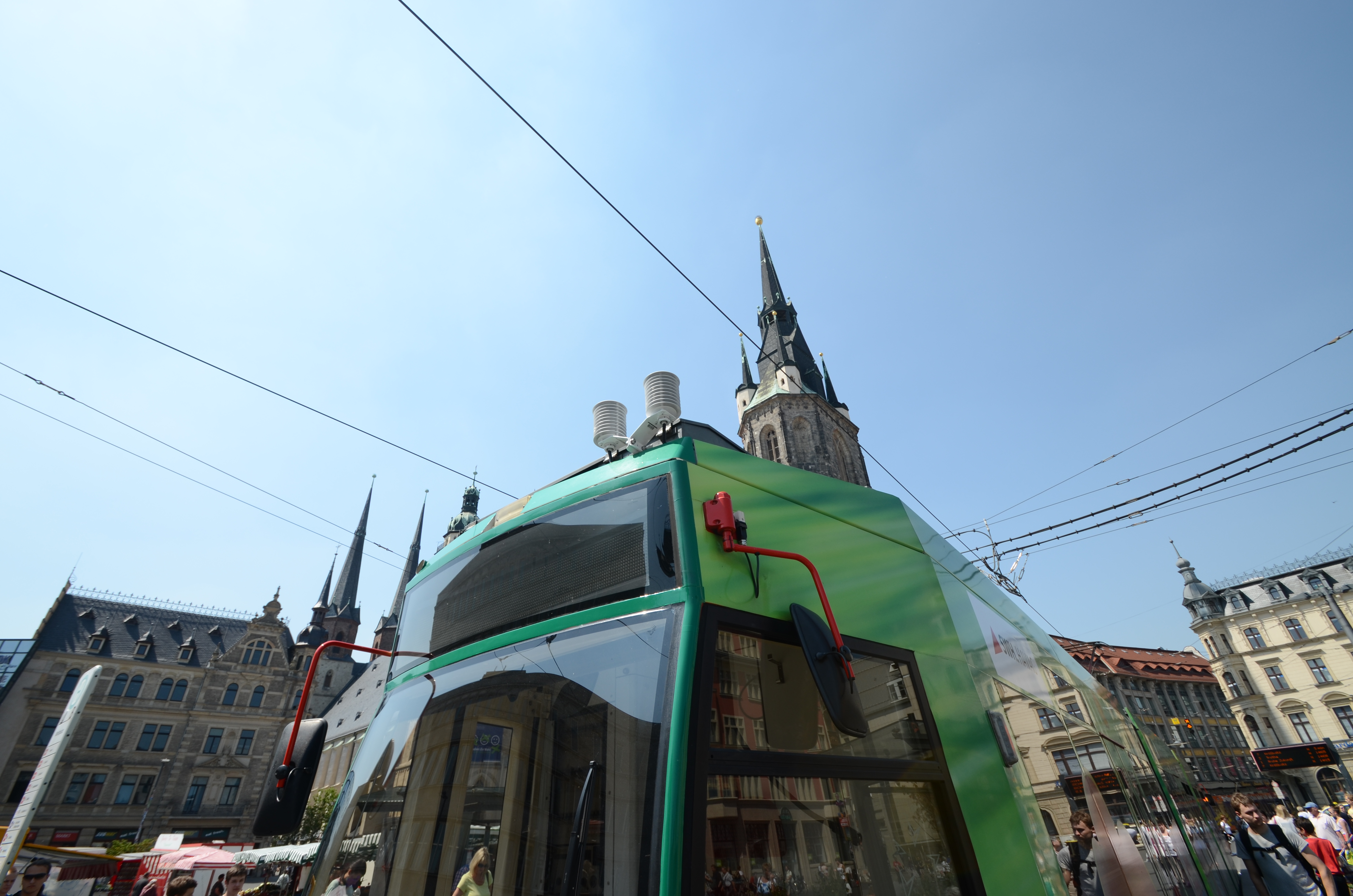 Halle (Saale), 17. Juni 2016 – An ihren Messfühlern über der Fahrerkabine sind sie zu erkennen: die drei Straßenbahnzüge der Halleschen Verkehrs-AG (HAVAG), die seit Mai 2014 im Rahmen eines deutschlandweit bislang einmaligen Projektes im Einsatz sind: Der Deutsche Wetterdienst (DWD) untersucht auf der Grundlage einer Vereinbarung mit dem Land Sachsen-Anhalt das Stadtklima von Halle (Saale). Projektpartner sind das Ministerium für Umwelt, Landwirtschaft und Energie des Landes Sachsen-Anhalt, der Deutsche Wetterdienst, die Hallesche Verkehrs-AG, das Landesamt für Umweltschutz Sachsen-Anhalt und die Stadt Halle (Saale). Mit GPS und speziellen Sensoren ausgerüstete Straßenbahnzüge sammeln meteorologische Daten zur Lufttemperatur und relativen Feuchte. Parallel werden Simulationen zur thermischen Belastung von Fahrgästen in Straßenbahnen durchgeführt. Um die Modellrechnungen zu untermauern, werden vom 20. bis 22. Juni 2016 die Fahrgäste in den drei „Klima-Bahnen“ zu ihrem thermischen Empfinden während der Fahrt befragt. Alle Projektpartner erhoffen sich weiterführende Hinweise, die nach Projektabschluss in einen umfassenden Abschlussbericht fließen werden.
