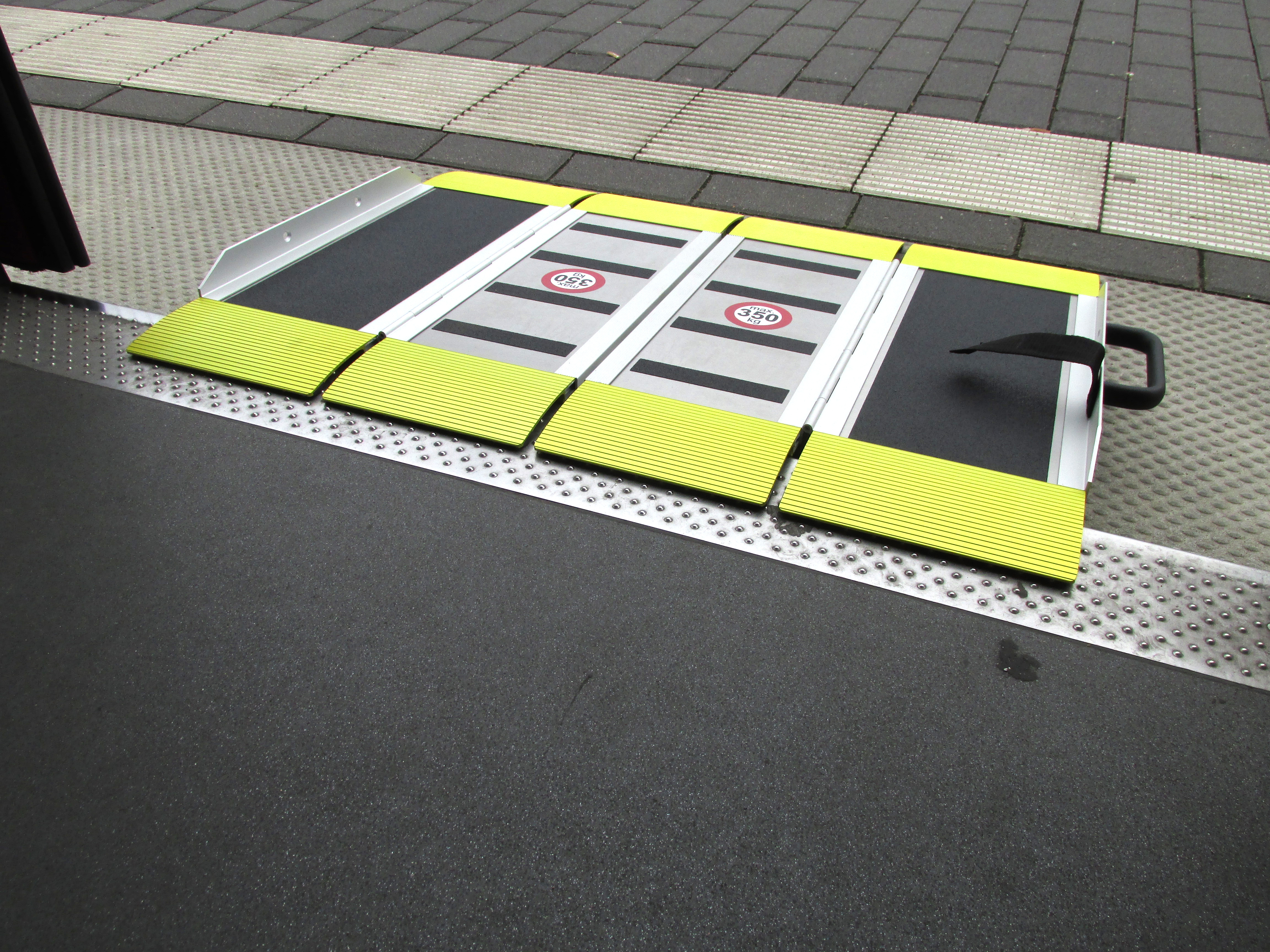 Die Brücke erleichtert das Hinein- und Herausrollen von Rollstühlen.