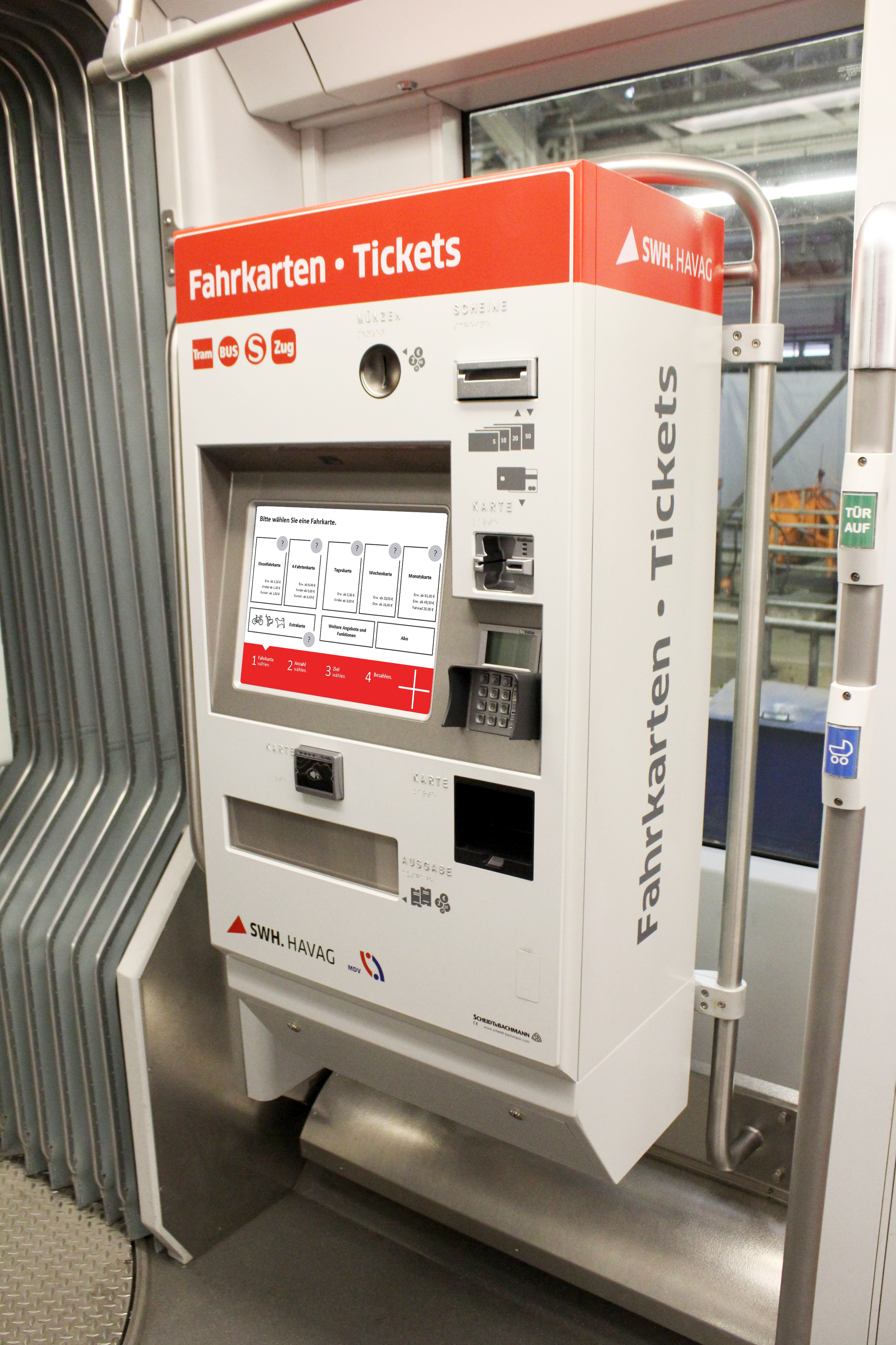 Ein neuer mobiler Fahrkartenautomat in einem Fahrzeug der HAVAG.