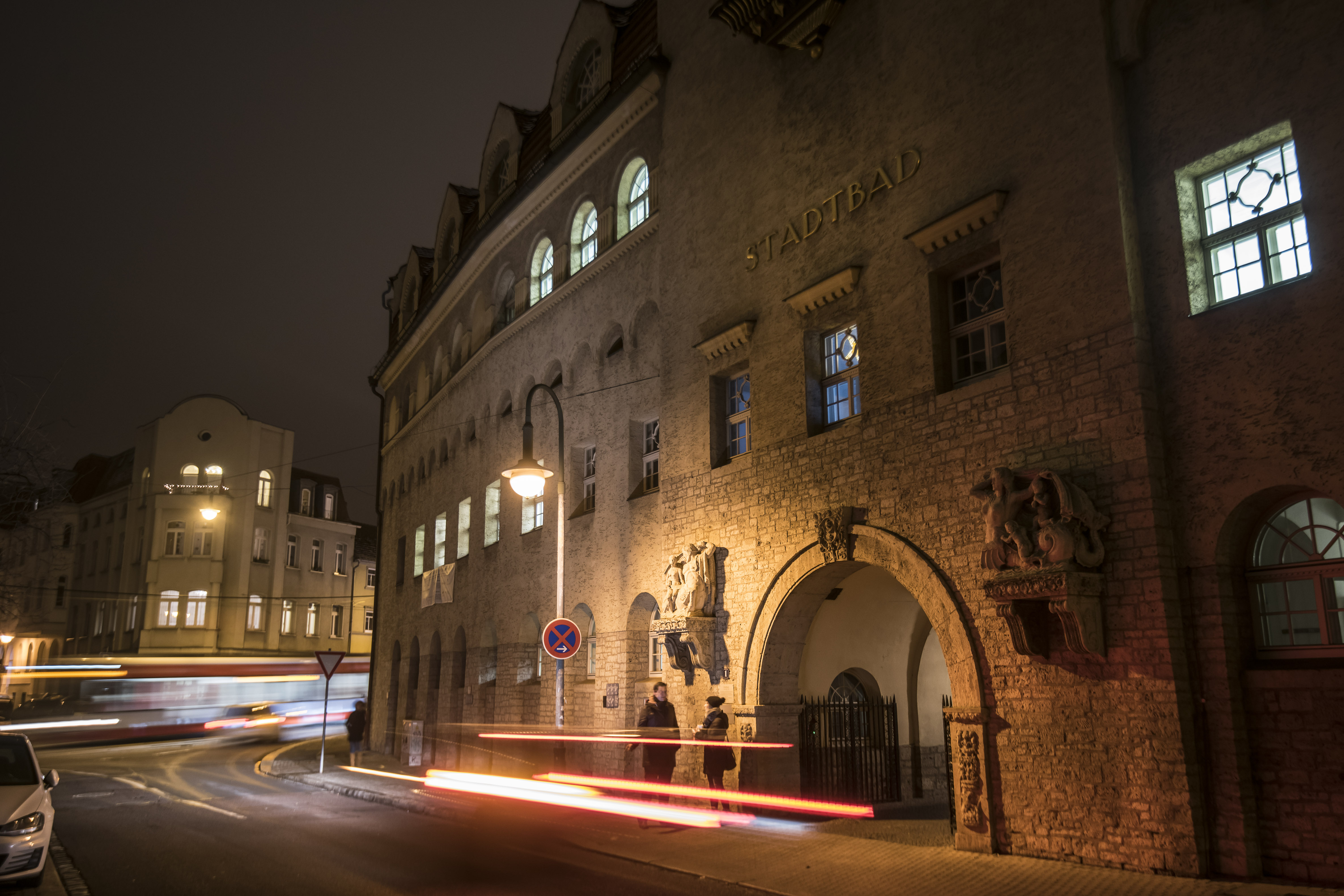 Auch das „Mondscheinglühen“ am 17. Januar 2017 im Stadtbad gab der Crowdfunding-Kampagne einen Schub und brachte 1.700 Euro an finanzieller Unterstützung ein, sodass nun knapp 5.000 Euro im Crowdfunding-Topf liegen. Im Hof des historischen Stadtbades ließen sich die Gäste Glühwein, Kinderpunsch und frisches Popcorn schmecken. In gemütlicher Atmosphäre trällerte der hallesche Musikverein Seeteufel freche Lieder am Feuer. Ein Zeichner fertigte auf Wunsch Karikaturen von den Gästen. Einen Blick hinter die Kulissen boten Führungen durch das Stadtbad.