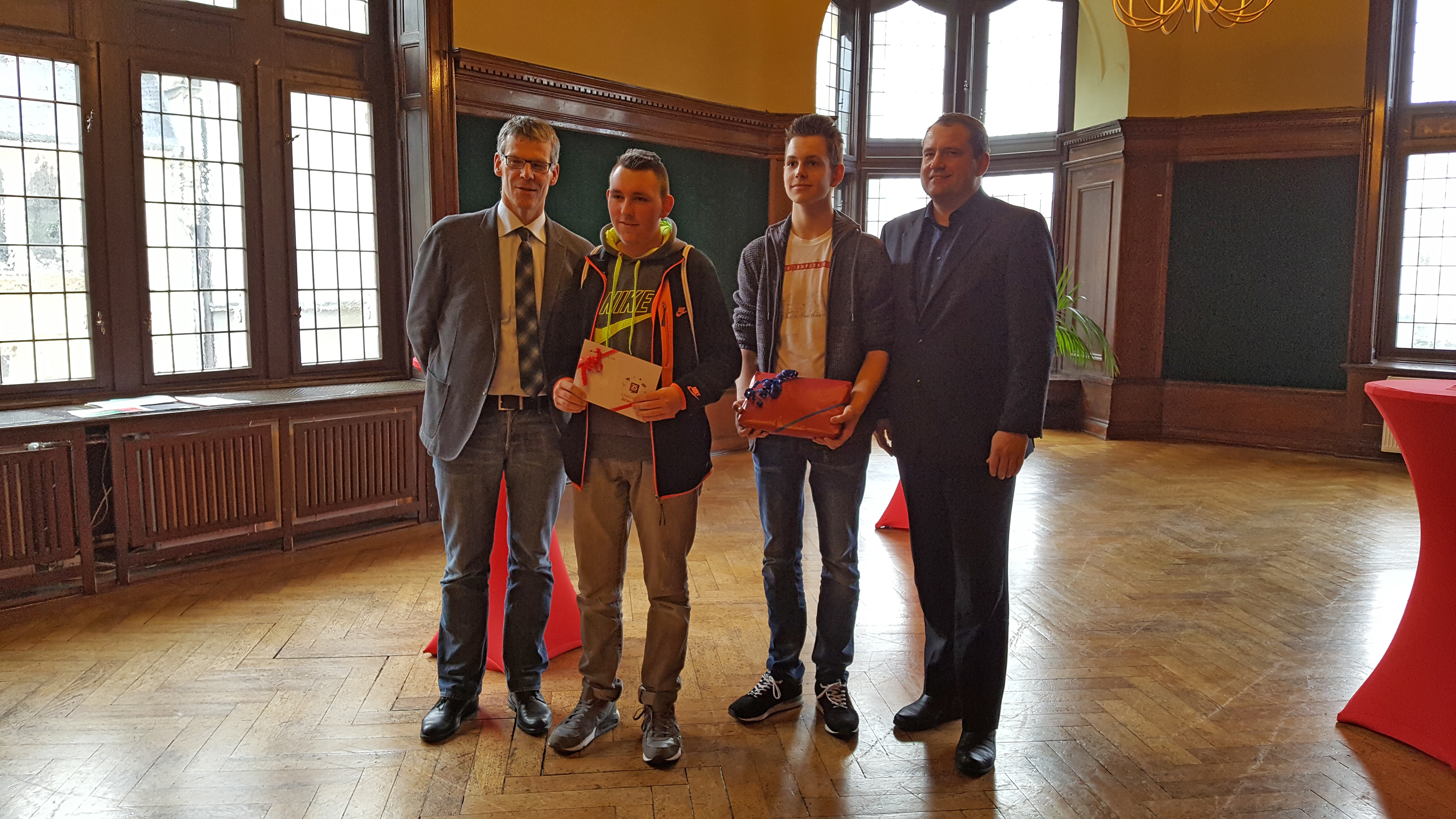 Ein Tablet, zwei professionelle Fotoshootings für Bewerbungsfotos sowie die Teilnahme an einem Knigge-Seminar für das Auftreten in der Bewerbungsphase – das sind die Preise, die Bürgermeister Egbert Geier und René Walther, Arbeitsdirektor der Stadtwerke Halle GmbH, heute an ausgewählte Jugendliche übergaben.