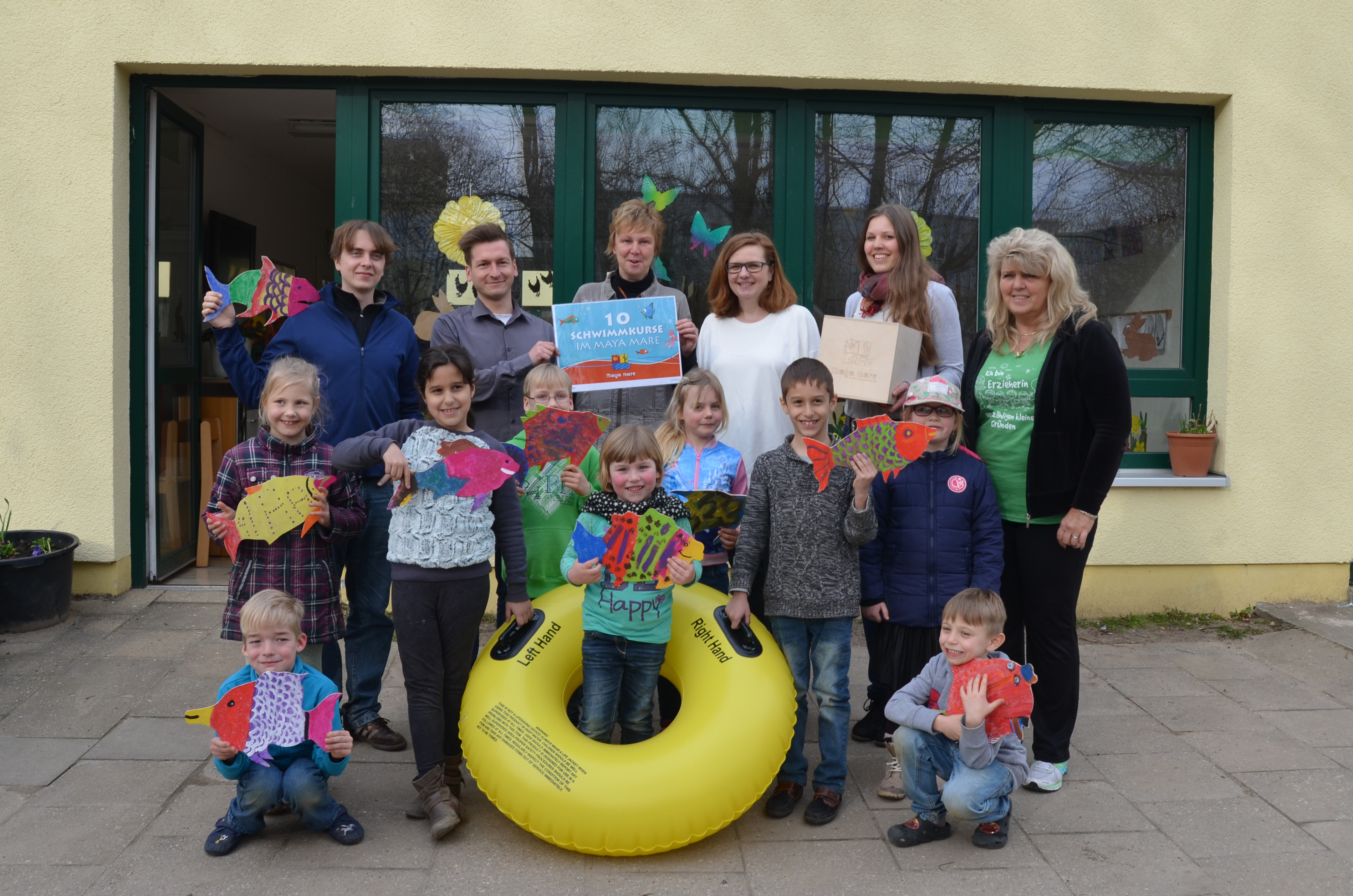 Am 31. Januar 2017 endete die Stille Auktion des Maya mare, bei der Bilder der Freiraumgalerie für einen guten Zweck still versteigert wurden. Weil es enorm wichtig ist, dass Kinder frühzeitig schwimmen lernen, kamen die Einnahmen heute dem Hort „Kinderpark“ zugute. Ziel war es, so vielen Kindern wie möglich, Schwimmlernkurse im Maya mare zu ermöglichen. Weil vier Partner ihre Kräfte bündelten - Maya mare, Freiraumgalerie, Kinder- und Jugendhaus e.V. und Projekt Fit & Fair - freuten sich heute zehn Kinder riesig.