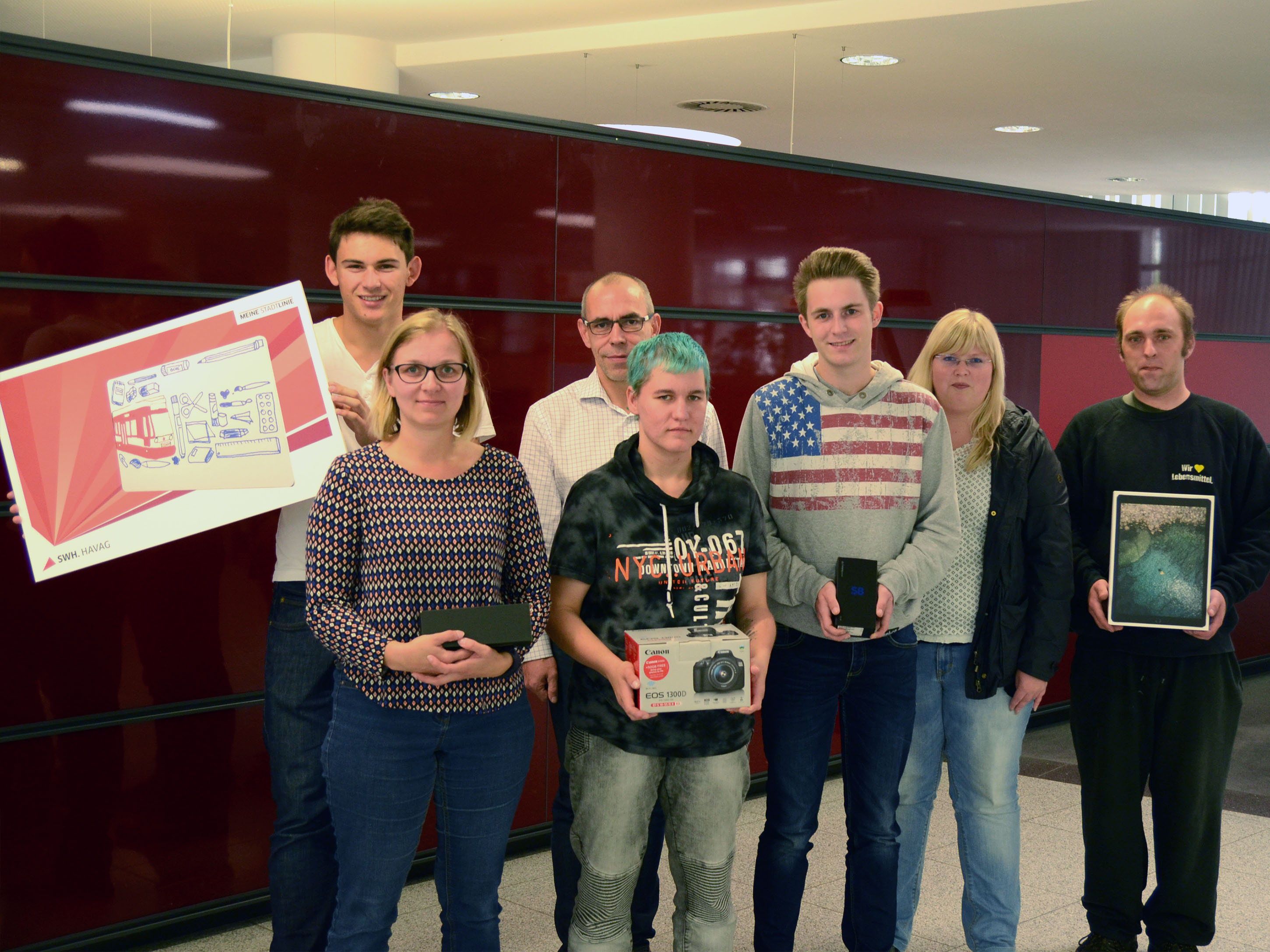 Die Gewinner können sich freuen: Jens-Uwe Hübsch erhält ein hochwertiges Tablet (iPad pro 128 GB), Jan Graue ein Smartphone (Samsung Galaxy S8+), Jenny Steinmetz eine Spiegelreflexkamera (Canon EOS 1300D), Johannes Klektau ein Schülerticket SCHOOL Card für ein Jahr, Anne-Kathrin KalfaKopfhörer (Beats by Dr. Dre), Michael Reinecke einen Amazon-Gutschein im Wert von 50 Euro, Sarah-Wiebke Krüger einen Amazon-Gutschein im Wert von 20 Euro, Claudia Strache ein Duschradio, Franziska Meckert einen SWH-Rucksack und Kathrin Wächter eine SWH-Sporttasche.