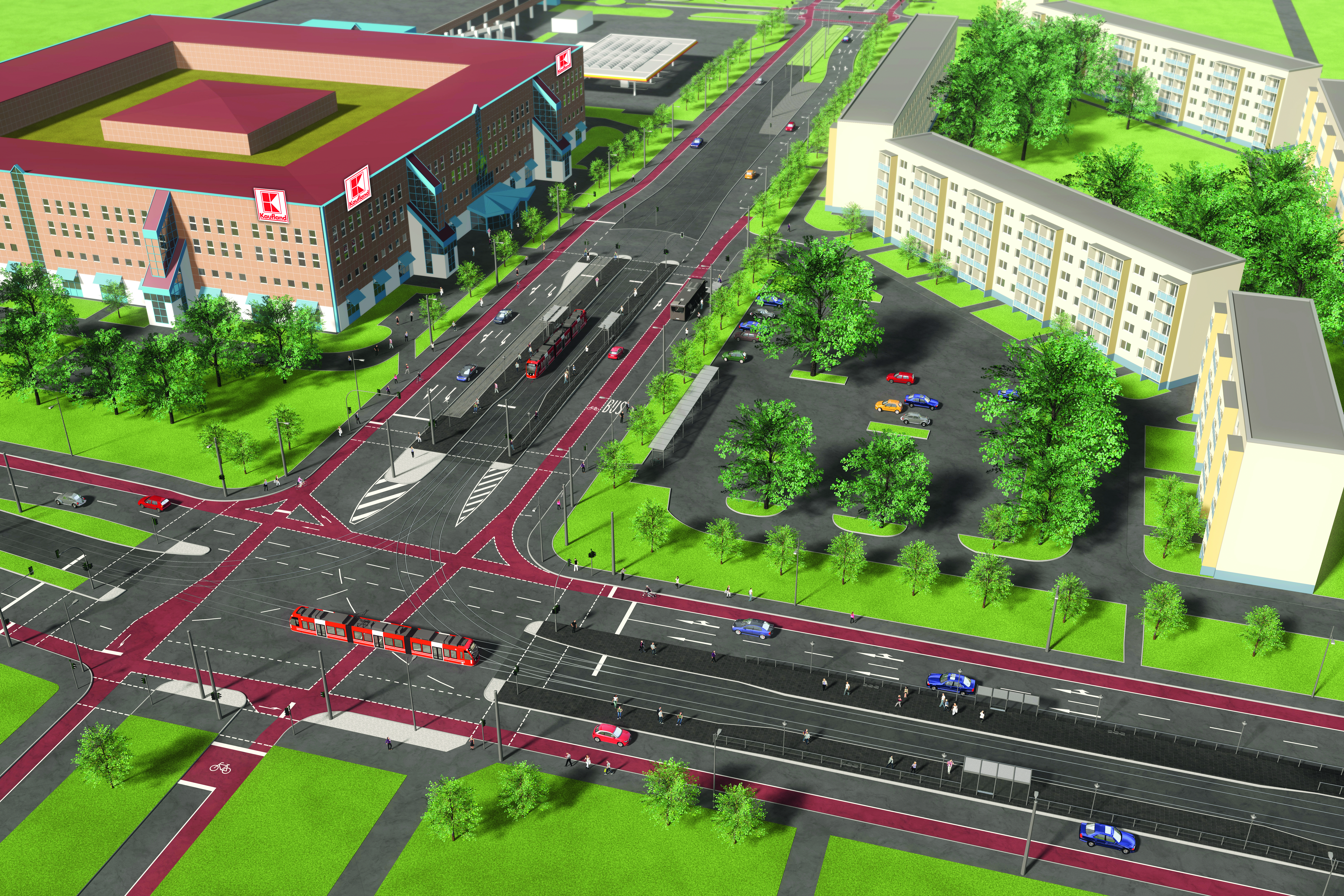 - neue Umsteige- und Endstellenanlage am Kaufland Center für Straßenbahn und Bus