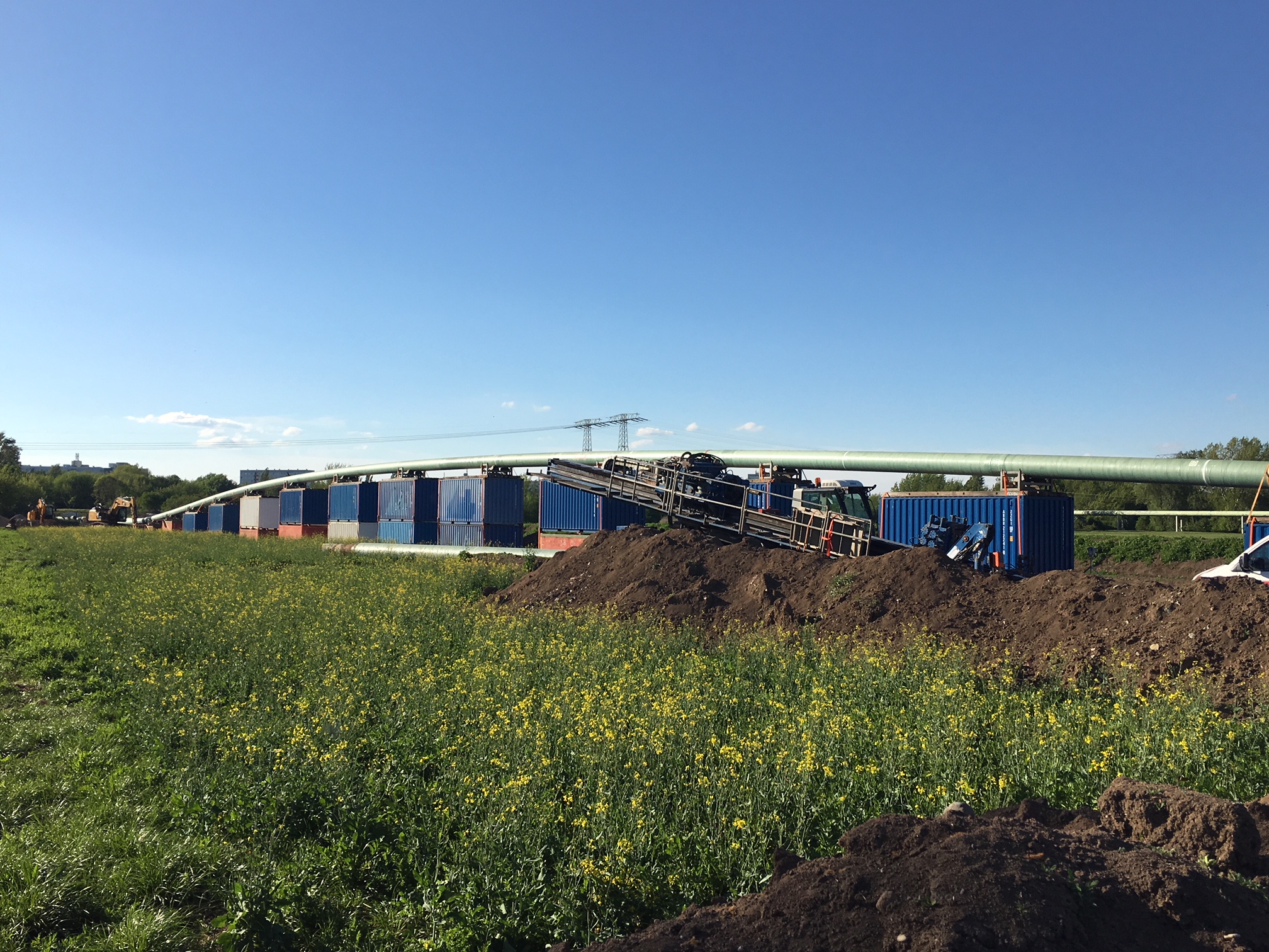 Wegen des Naturschutzgebietes Passendorfer Wiesen wenden die Stadtwerke Halle ein anspruchsvolles und besonders umweltschonendes Verfahren an - das Horizontalspülbohrverfahren. In 25 Metern Tiefe wurde in den vergangenen drei Monaten ein mit einer Tonsuspension gestütztes Bohrloch hergestellt, durch das die Leitung über das Wochenende vom 11. bis 13. Mai 2018 hindurchgezogen wird. So unterquert die Leitung die Saale, die Passendorfer Wiesen und den Ruderkanal ohne sie zu berühren.