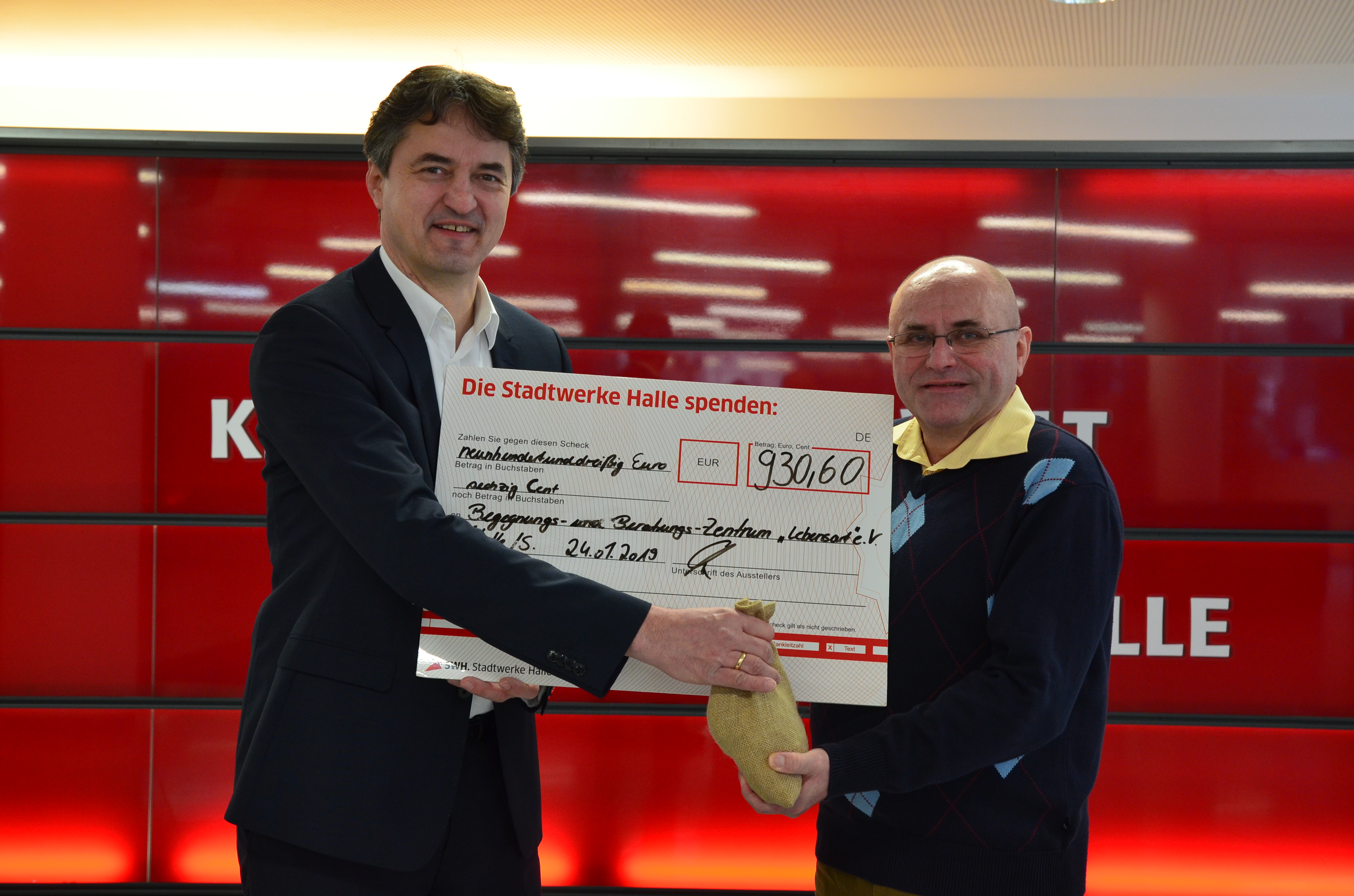 Die Stadtwerke-Mitarbeiter bewiesen in der Vorweihnachtszeit im Rahmen einer betrieblichen Weihnachtsfeier ein großes Herz und sammelten Spendengelder für das Begegnungs- und Beratungs- Zentrum „Lebensart“ e.V. Heute überreichte Matthias Lux, Vorsitzender Geschäftsführer der Stadtwerke Halle GmbH, dem Verein die Spende seiner Mitarbeiter in Höhe von 930,60 Euro.