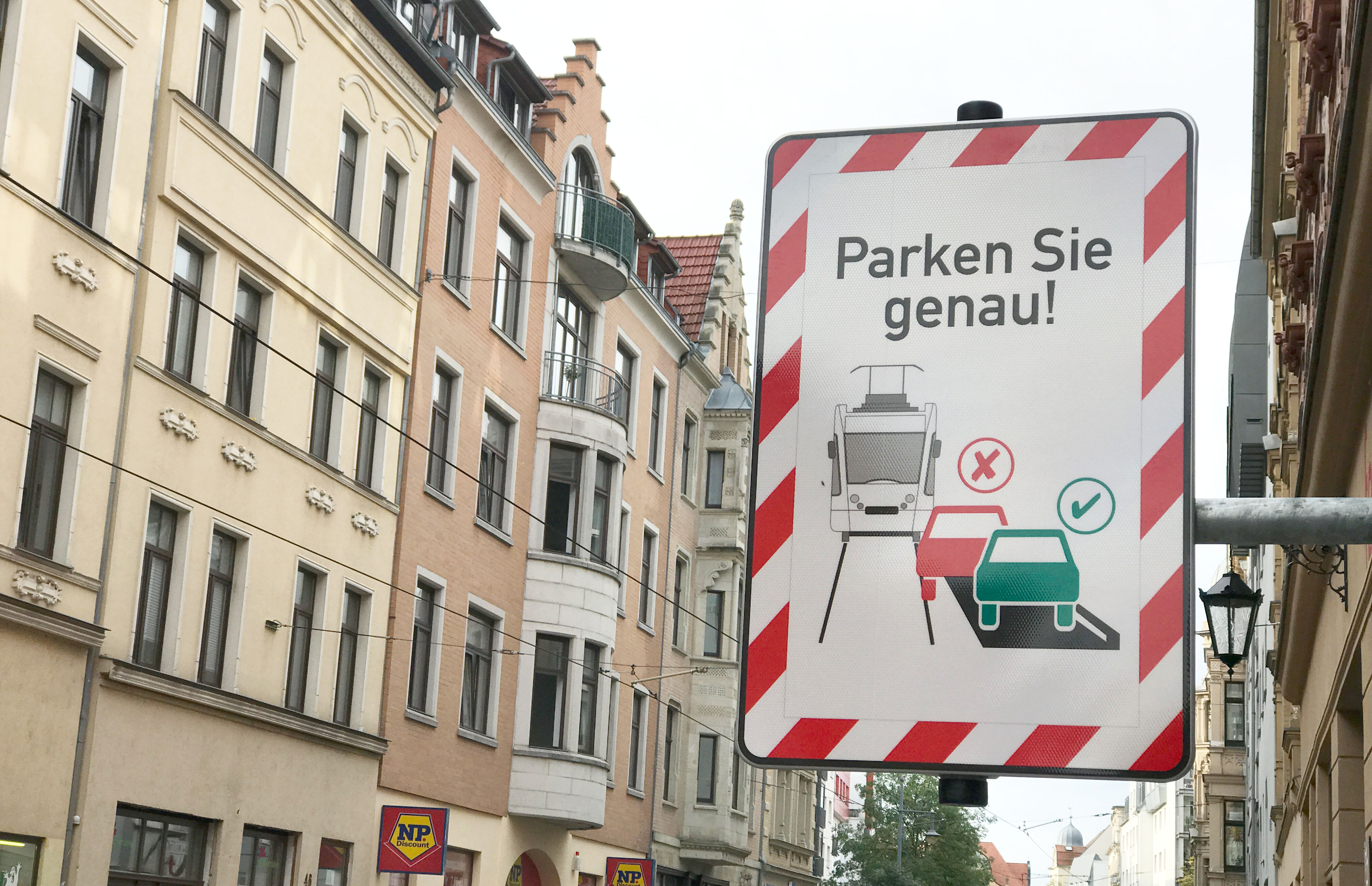 Falschparker im Gleisbereich sind ein alltägliches Problem im Betriebsablauf der Halleschen Verkehrs-AG, die Zahlen sind aber durch ergriffene Maßnahmen rückläufig. Durch das Zuparken von Haltestellen, Gleisen und Busspuren wird insbesondere der Linienbetrieb der Straßenbahn regelmäßig in seiner Zuverlässigkeit und Pünktlichkeit beeinträchtigt. Leidtragende sind die Fahrgäste, die sich in der Regel auf eine sehr gute Qualität des Öffentlichen Nahverkehrs verlassen können. Die größten Probleme mit Falschparkern im Gleisbereich gibt es nach wie vor in der Geiststraße, Seebener Straße (Hinterausgang Zoo), im Steinweg und in der Richard-Wagner-Straße. Die HAVAG hat an besonders prekären Stellen wie in der Geiststraße und Seebener Straße Schilder „Parken Sie Genau“ aufgestellt. Die Schilder zeigen Wirkung.