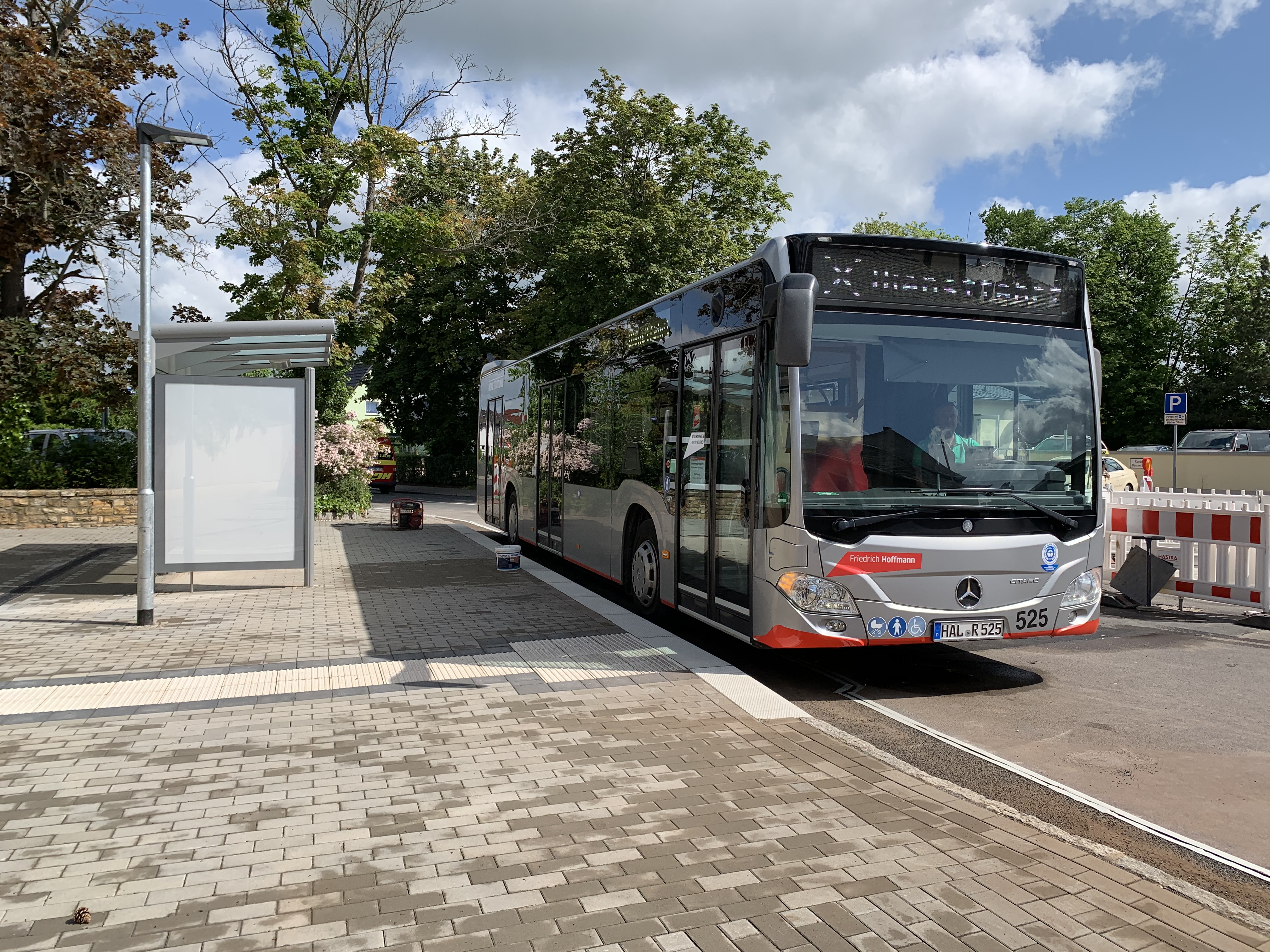Das Krankenhaus Martha-Maria ist jetzt noch bequemer mit dem Bus zu erreichen. Dafür sorgt die neue barrierefreie Haltestelle in unmittelbarer Nähe des Krankenhauses. Die Bushaltestelle wurde in den letzten Wochen durch die Stadt Halle barrierefrei umgebaut. Das bedeutet vor allem, dass der Gehsteig an der Haltestelle erhöht wurde. Bustüren und Bordstein besitzen nun die gleiche Höhe. Fahrgäste können so leichter ein- und aussteigen. Gerade für Rollstuhlfahrer*innen, Kinderwagen oder Rollatoren entfallen störende Höhenunterschiede, die ein Einsteigen in den Bus erschwerten. Fahrgäste mit Sehbehinderung können sich zusätzlich durch ein neu installiertes taktiles Leitsystem im Haltestellenbereich besser orientieren. Patient*innen und Gäste können dank der Neuerung nun einfacher mit dem ÖPNV zum Krankenhaus Martha-Maria gelangen. Zusätzlich installierte die HAVAG einen neuen Fahrgastunterstand vom Typ „Xenon“. Dieser wirkt durch das gläserne Dach besonders freundlich und steigert mit seiner helleren Beleuchtung das Sicherheitsgefühl der Fahrgäste.