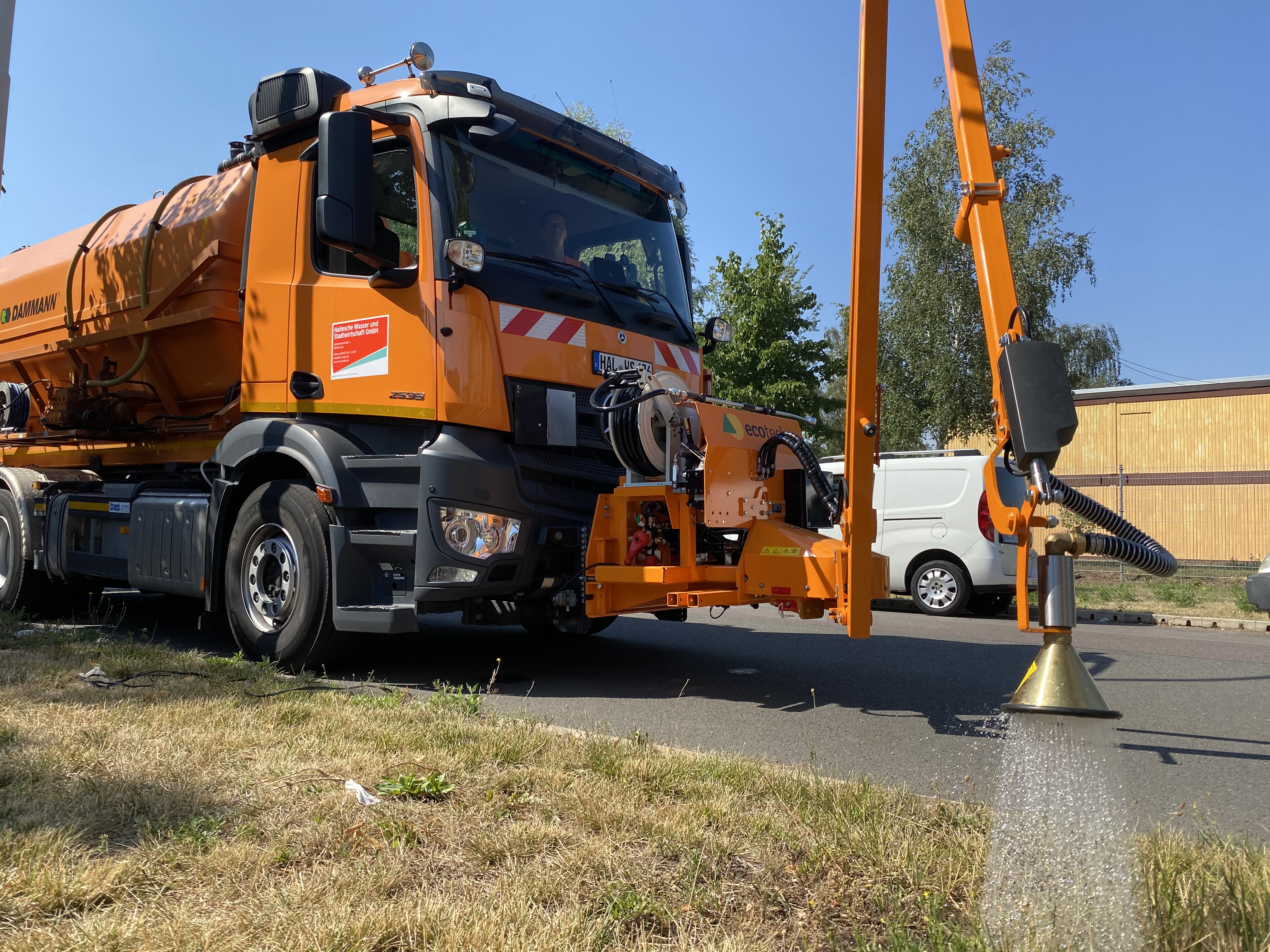 Unter der Trockenheit sowie den anhaltend hohen Temperaturen leiden nicht nur wir Menschen, auch die Natur kommt an ihre Grenzen. Die HWS hilft jetzt den Pflanzen im Auftrag der Stadt Halle (Saale). Um diesen Auftrag zu erfüllen, hat die HWS einen Gießarm angeschafft, welcher an ein Kombifahrzeug montiert wurde. Dieses Fahrzeug besitzt außerdem einen 12.000-Liter-Tank. Vor allem Jungbäume, die nach Baumaßnahmen gepflanzt wurden, und ausgewählte große Alleen werden dadurch im Auftrag der Stadt mit ausreichend Wasser versorgt. „Wir alle wollen unser grünes Halle erhalten. Deshalb greifen wir gern der Natur bei der aktuellen Trockenheit unter die Arme. Mit unserem Bewässerungsfahrzeug sorgen wir dafür, dass die Bäume nach vorgegebener Tourenplanung auch den Sommer gut überstehen“, sagt Sven Schossig, Abteilungsleiter für Reinigung und Behälterentsorgung der HWS.