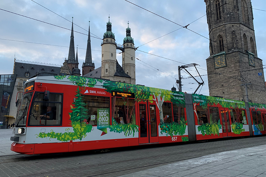 Seit 1. Januar 2021 fahren die Straßenbahnen  der Halleschen Verkehrs-AG, ein Unternehmen der Stadtwerke Halle-Gruppe, mit Ökostrom der EVH GmbH.  Die Hallesche Verkehrs-AG (HAVAG) bietet damit allen Fahrgästen einen jetzt noch umweltfreundlicheren Personennahverkehr. Denn der grüne Strom, den die HAVAG als Großkundin von der EVH bezieht, verfügt über das OK-Power Label. Dieses Label garantiert, dass der Strom zu 100 Prozent aus erneuerbaren Energiequellen stammt. Mindestens ein Drittel wurde dabei sogar in neu gebauten Anlagen erzeugt.