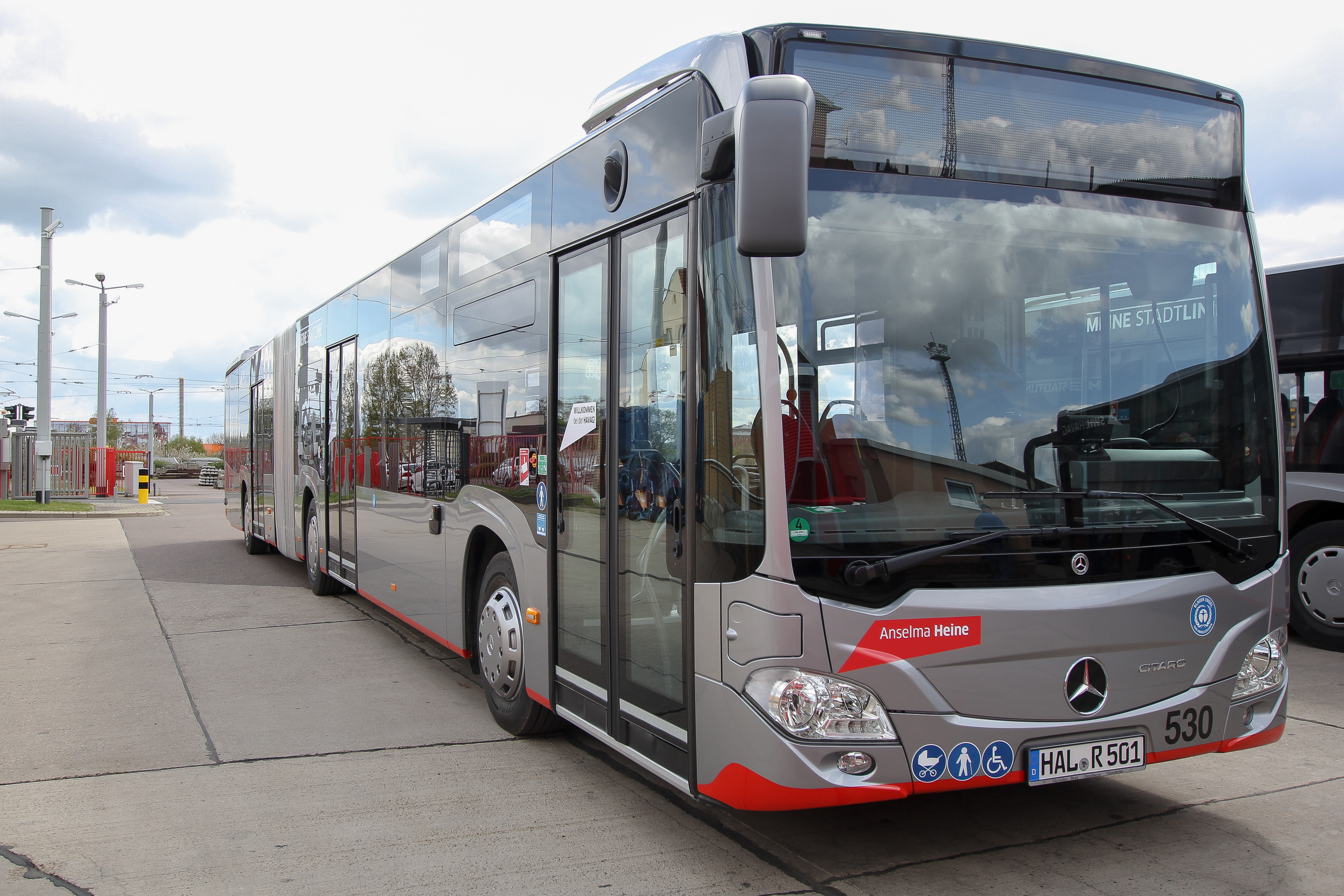 Die Hallesche Verkehrs-AG (HAVAG), ein Unternehmen der Stadtwerke Halle-Gruppe, hat heute einen neuen hochmodernen Bus in Betrieb genommen. Wie die zuvor angeschafften Busse, trägt auch dieser den Namen einer Person der halleschen Stadtgeschichte. Der neue Bus mit der Nummer 530 ehrt die Schriftstellerin Anselma Heine, die in Halle aufgewachsen ist und 1896 hier ihren ersten erfolgreichen Erzählband verfasste. Heute ist der Bus auf der Linie 22 unterwegs.