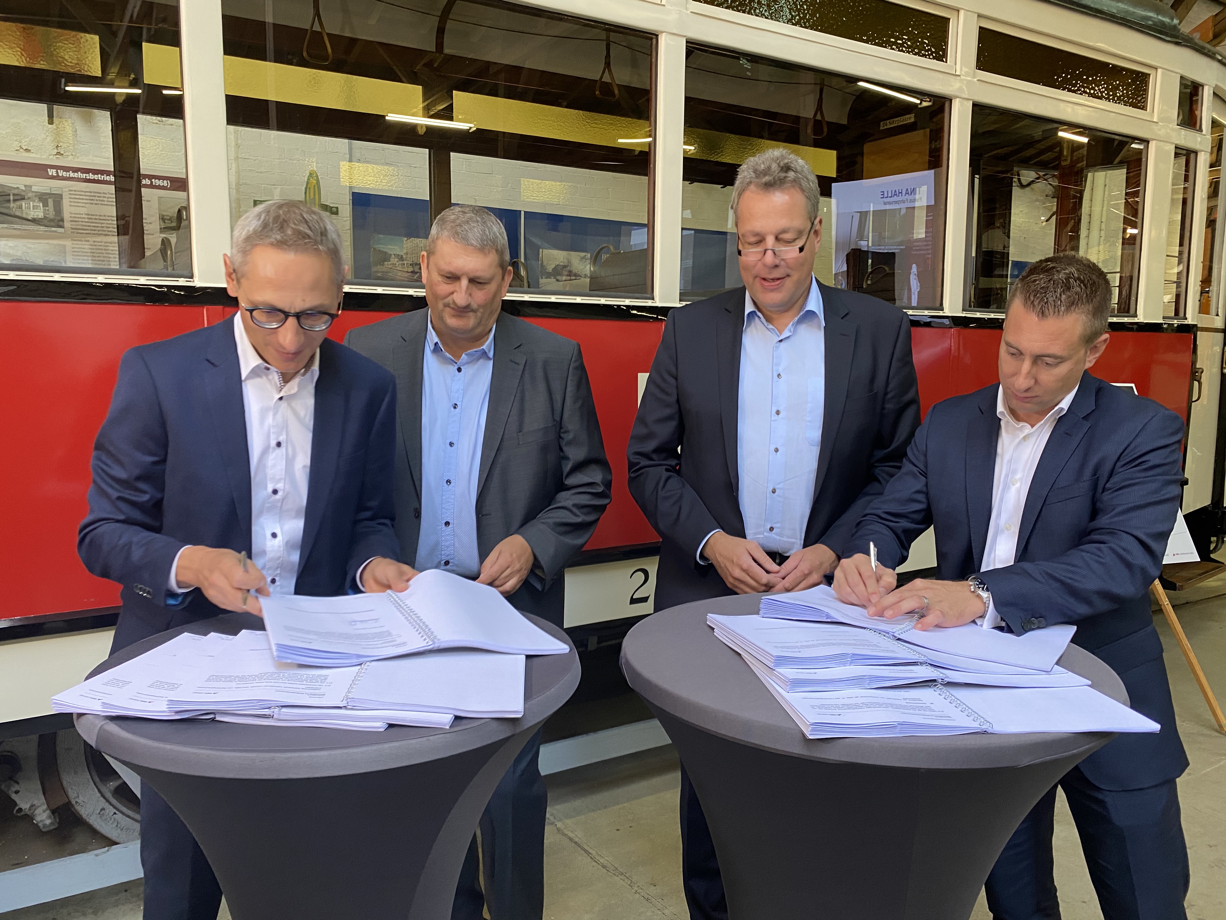 „Wir wollen, dass die Bürgerinnen und Bürger, die Hallenser und ihre Gäste, die Art ihrer Mobilität frei wählen können. Die Entscheidung für den ÖPNV fällt dabei immer öfter, wenn die Rahmenbedingungen stimmen und das Angebot attraktiv und komfortabel ist. Und genau das werden die neuen Straßenbahnzüge hier in Halle garantieren. Darum hat das Land Sachsen-Anhalt diesen wichtigen Schritt zur Mobilitätswende in der Saalestadt auch großzügig gefördert“, erklärte Sachsen-Anhalts Verkehrsstaatssekretär Sven Haller zur Vertragsunterzeichnung.