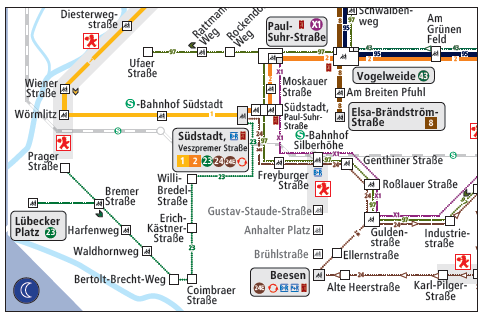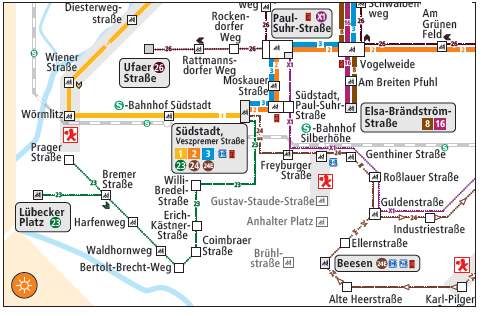 Während der Gleisbauarbeiten werden die Straßenbahnhaltestellen „Freyburger Straße“, „S-Bf. Silberhöhe“, „Gustav-Staude-Straße“, „Anhalter Platz“, „Brühlstraße“ und „Beesen“ nicht bedient.
