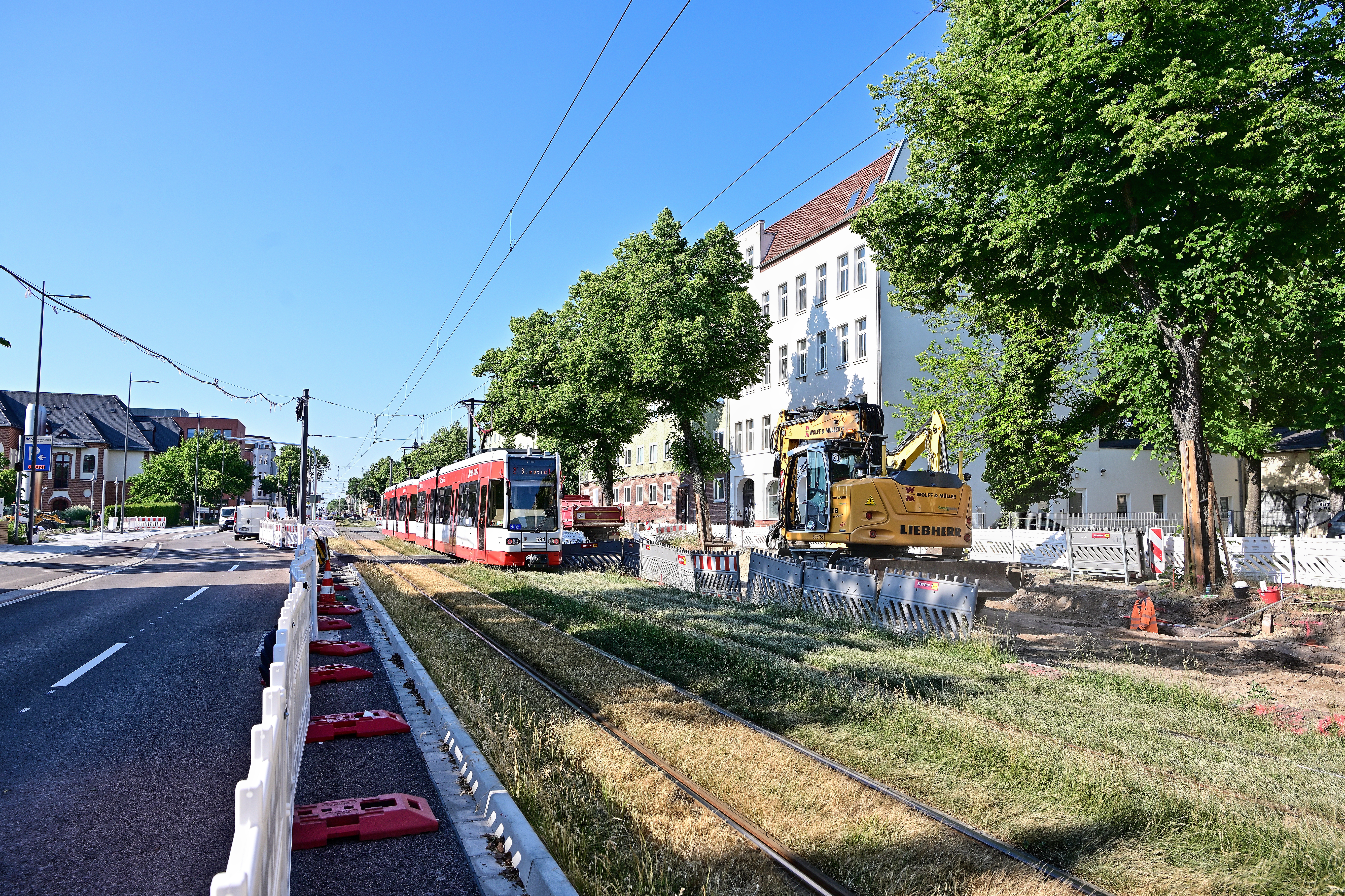 Auf der STADTBAHN-Baustelle Merseburger Straße werden am Freitag, 23. Juni 2023, die stadteinwärts führenden Verkehrsanlagen im nördlichen Bauabschnitt für den Verkehr freigegeben. Für die HAVAG-Straßenbahnlinien 2 und 5 ergeben sich keine Änderungen. Bauherr der STADTBAHN-Baustelle ist die Hallesche Verkehrs-AG (HAVAG), ein Unternehmen der Stadtwerke Halle-Gruppe.