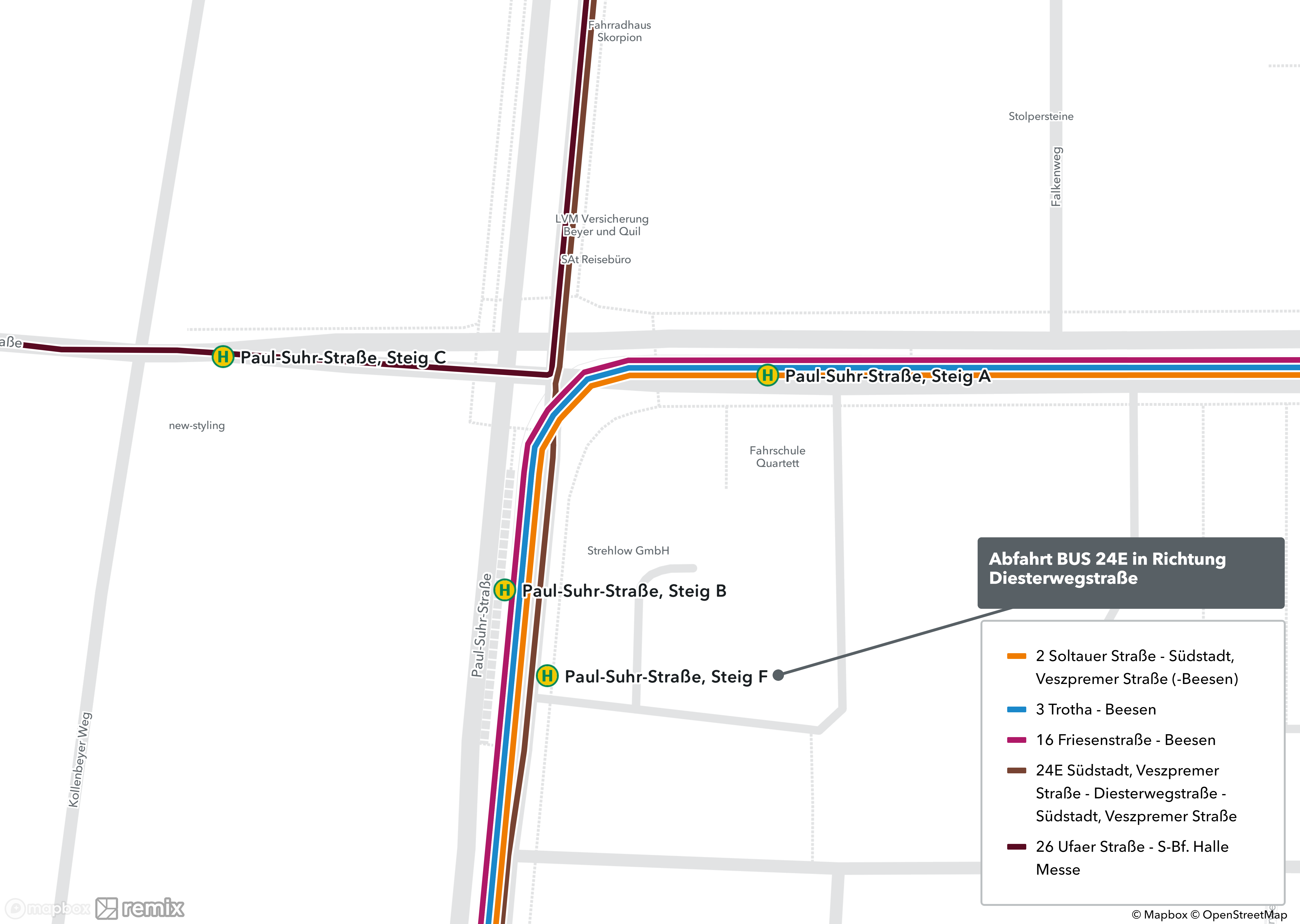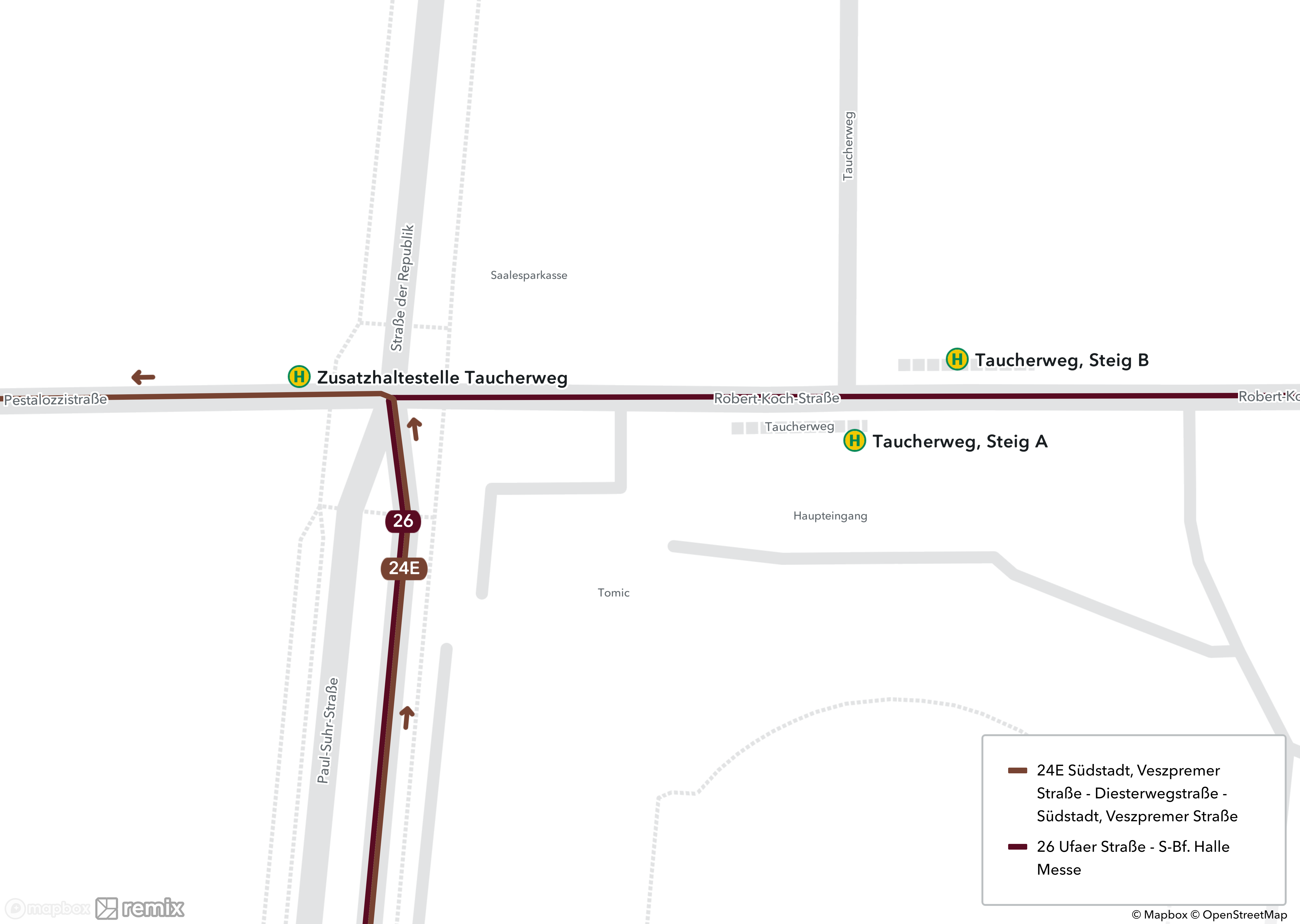 Aufgrund des Baufortschritts im STADTBAHN-Projekt Böllberger Weg Süd finden von Donnerstag, 6. Juli, bis Sonntag, 23. Juli, vorbereitende Bauarbeiten zur Wiederaufnahme des zweigleisigen Straßenbahnbetriebs der Linie 1 statt. Sie fährt daher im genannten Zeitraum verkürzt und wird durch die Buslinie 24E ersetzt. Ab Montag, 24. Juli, um 4 Uhr, fährt die Linie 1 dann wieder durchgängig zweigleisig über den südlichen Böllberger Weg und den Südstadtring. Bauherr ist die Hallesche Verkehrs-AG, ein Unternehmen der Stadtwerke Halle-Gruppe. Darüber hinaus reagiert die HAVAG auf Anregungen von Kundinnen und Kunden und passt ebenfalls ab Donnerstag, 6. Juli, die Linienführung der Linie 5 an, um den Straßenbahnverkehr in der Stadt Halle zu stabilisieren.
