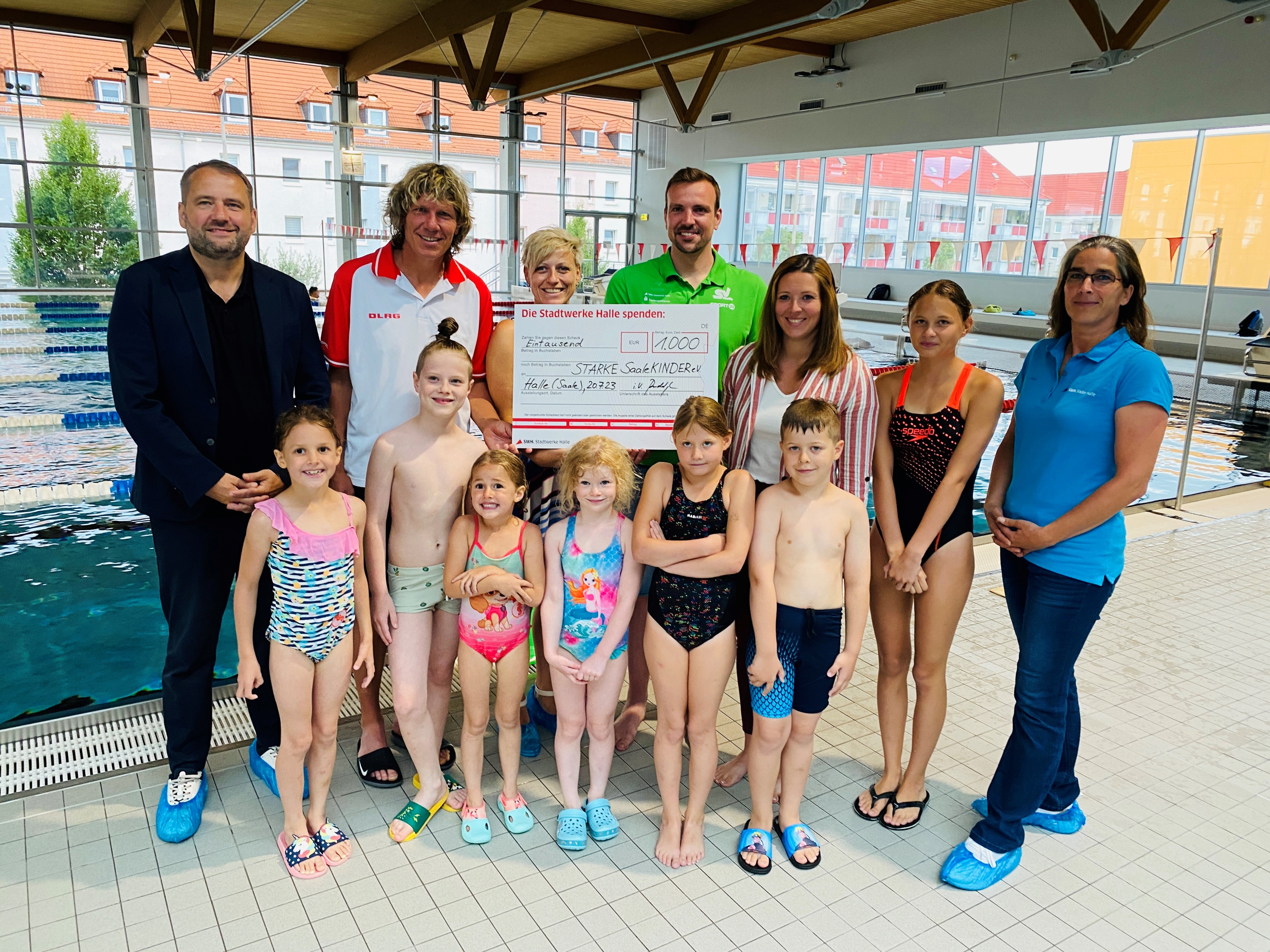 Eine Spende in Höhe von insgesamt 1.000 Euro überreichte heute René Walther, Geschäftsführer der Stadtwerke Halle, dem Verein „STARKE SaaleKINDER e.V.“. Damit soll seelisch und körperlich beeinträchtigt Kindern die Schwimmausbildung ermöglicht werden. Zur Spendenübergabe in der Robert-Koch-Schwimmhalle erschienen zudem Holger Friedrich, Geschäftsführer des DLRG Sachsen-Anhalt und Paul Biedermann, ehemaliger Profischwimmer aus Halle (Saale). Die Stadtwerke Halle übernehmen nicht nur wirtschaftliche Verantwortung, sondern engagieren sich auch gesellschaftlich für die Saalestadt und ihre Umgebung, weit über ihren Versorgungsauftrag hinaus.