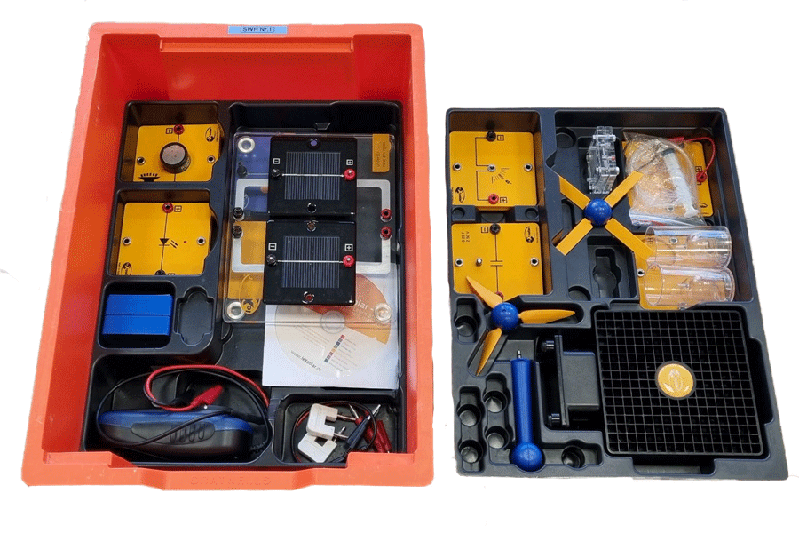 Mit dem Experimentierkoffer Smart Grid werden intelligente Stromnetze mit verschiedenen erneuerbaren Energiequellen im Labormaßstab aufgebaut. In praxisorientierten Versuchen werden Herausforderungen bei der Integration von Photovoltaik- oder Windkraftanlagen im Netz aufgezeigt.
